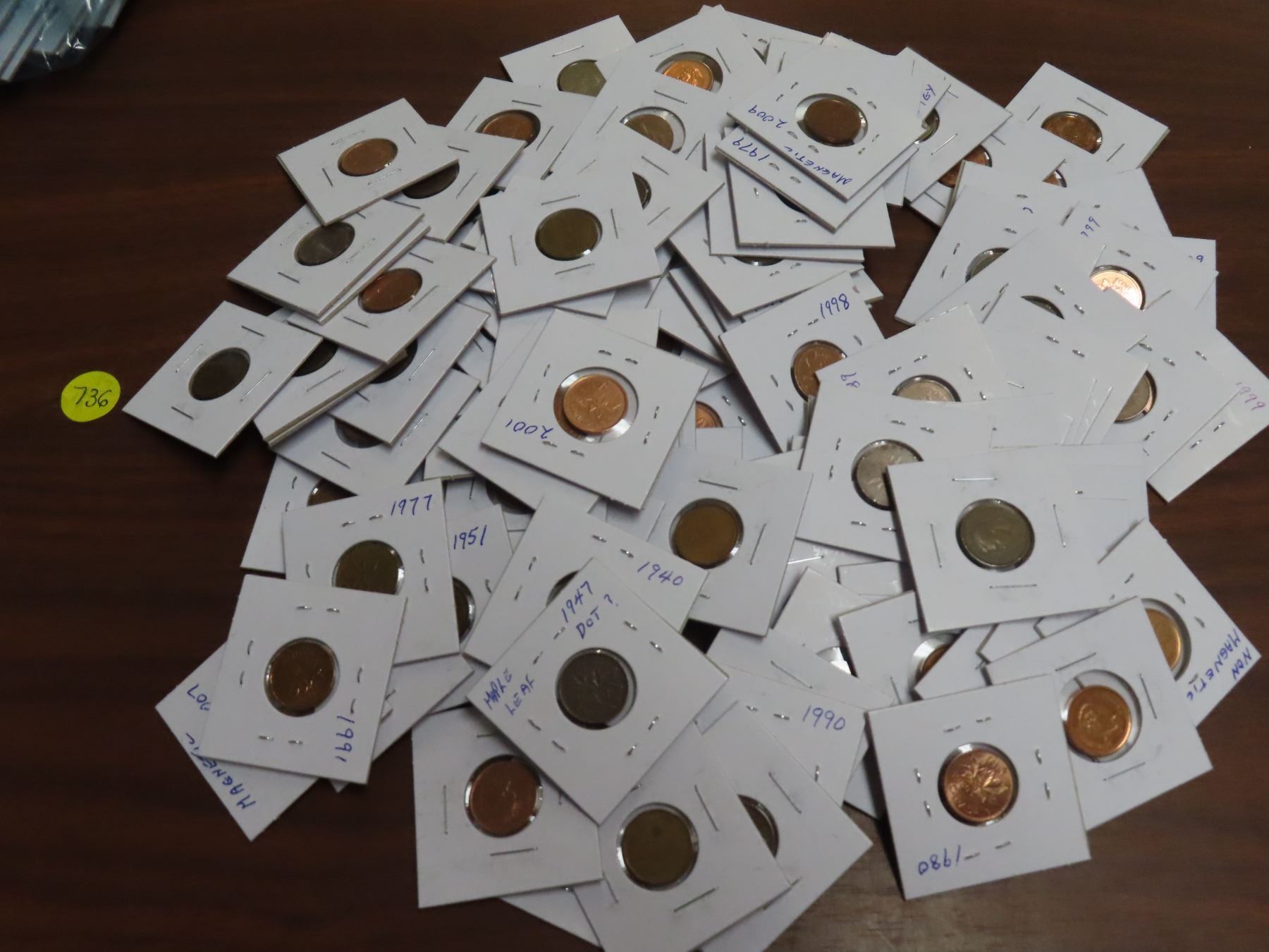 Lot of 115 Canada pennies, includes years 1934 to 2011
