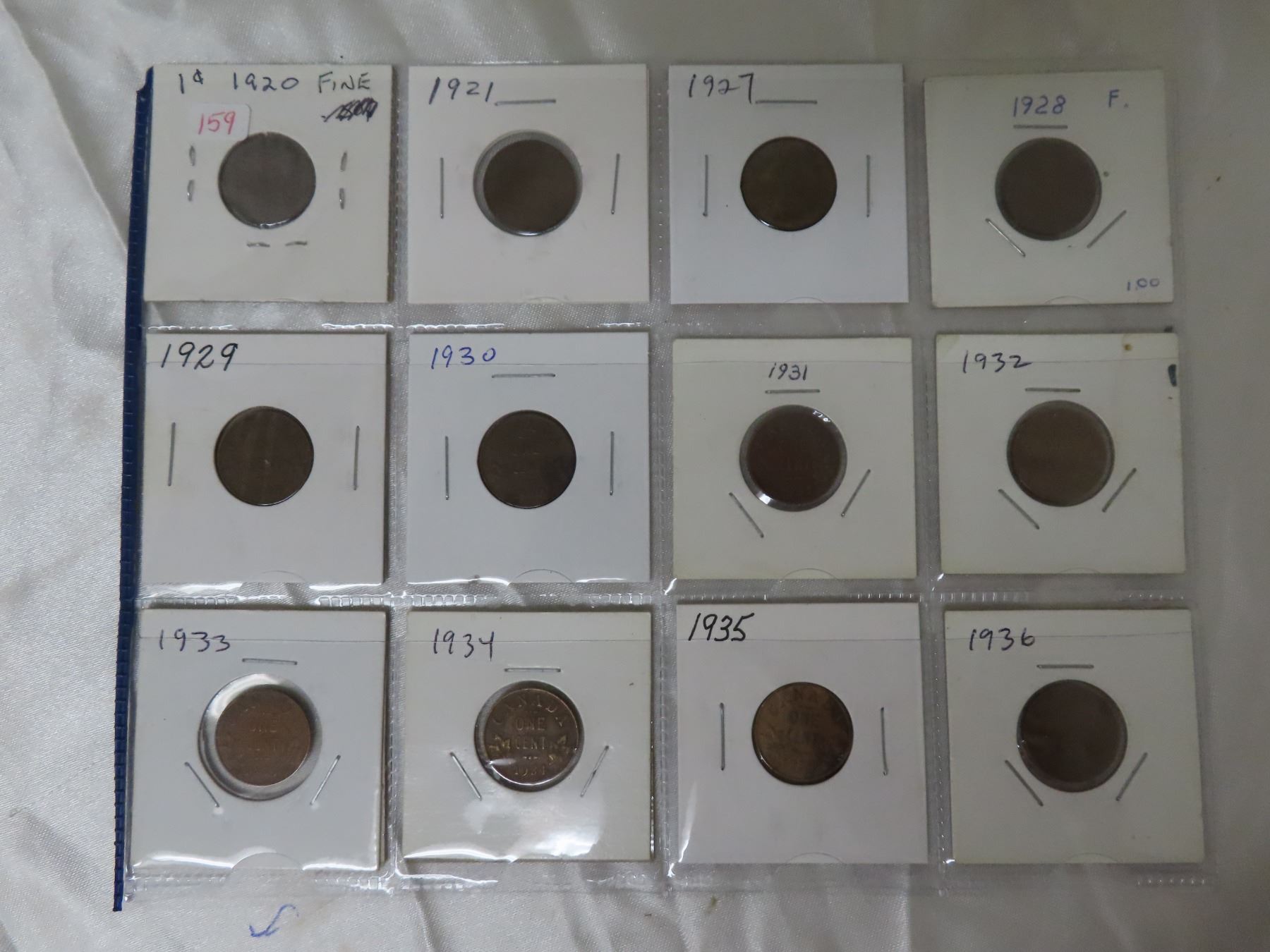 Lot of 12 Canadian George V Small Cents. 1920, 1921, 1927, 1928, 1929, 1930, 1931, 1932, 1933, 1934, 1935 & 1936. Coins grade VG to VF.