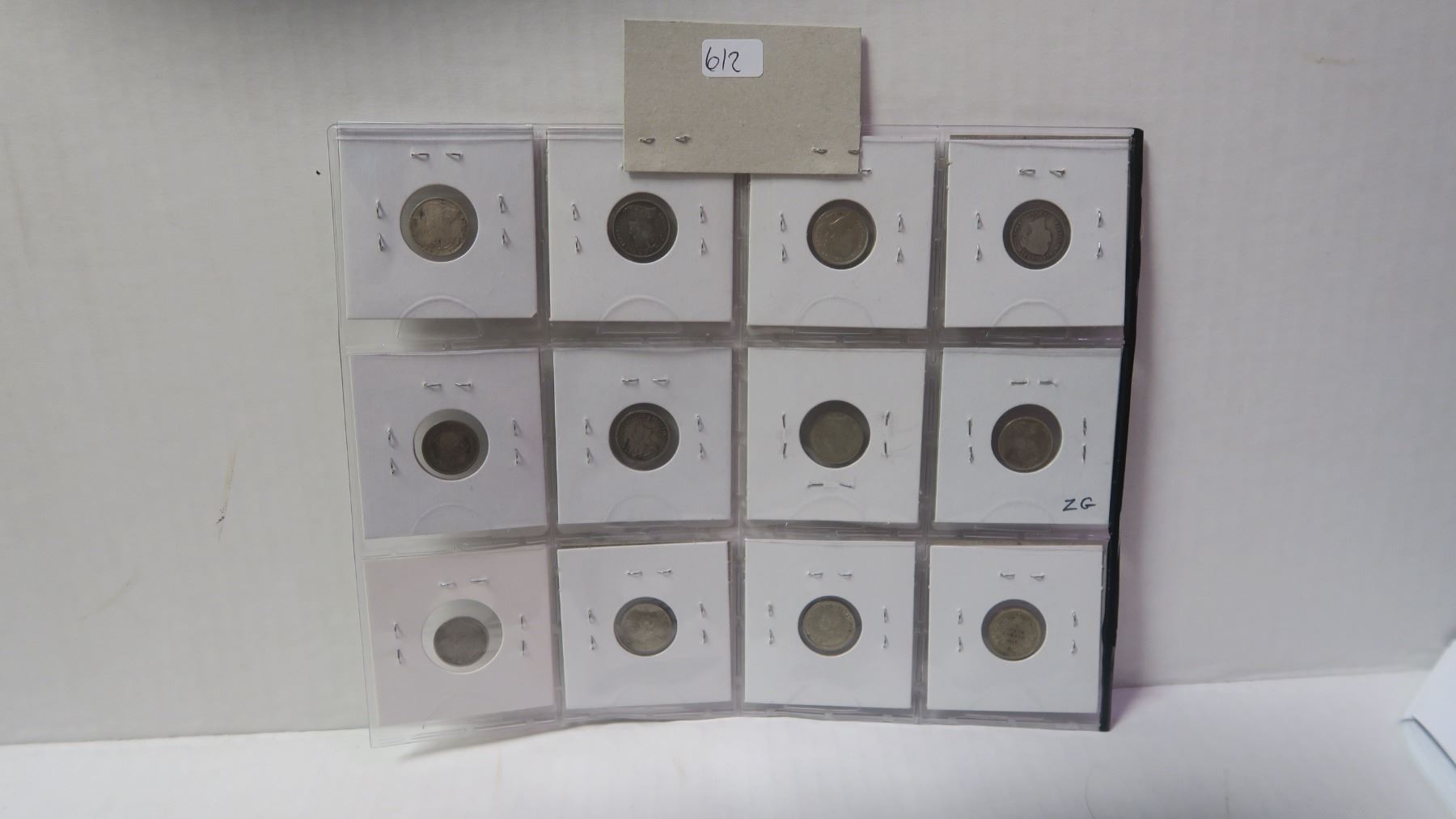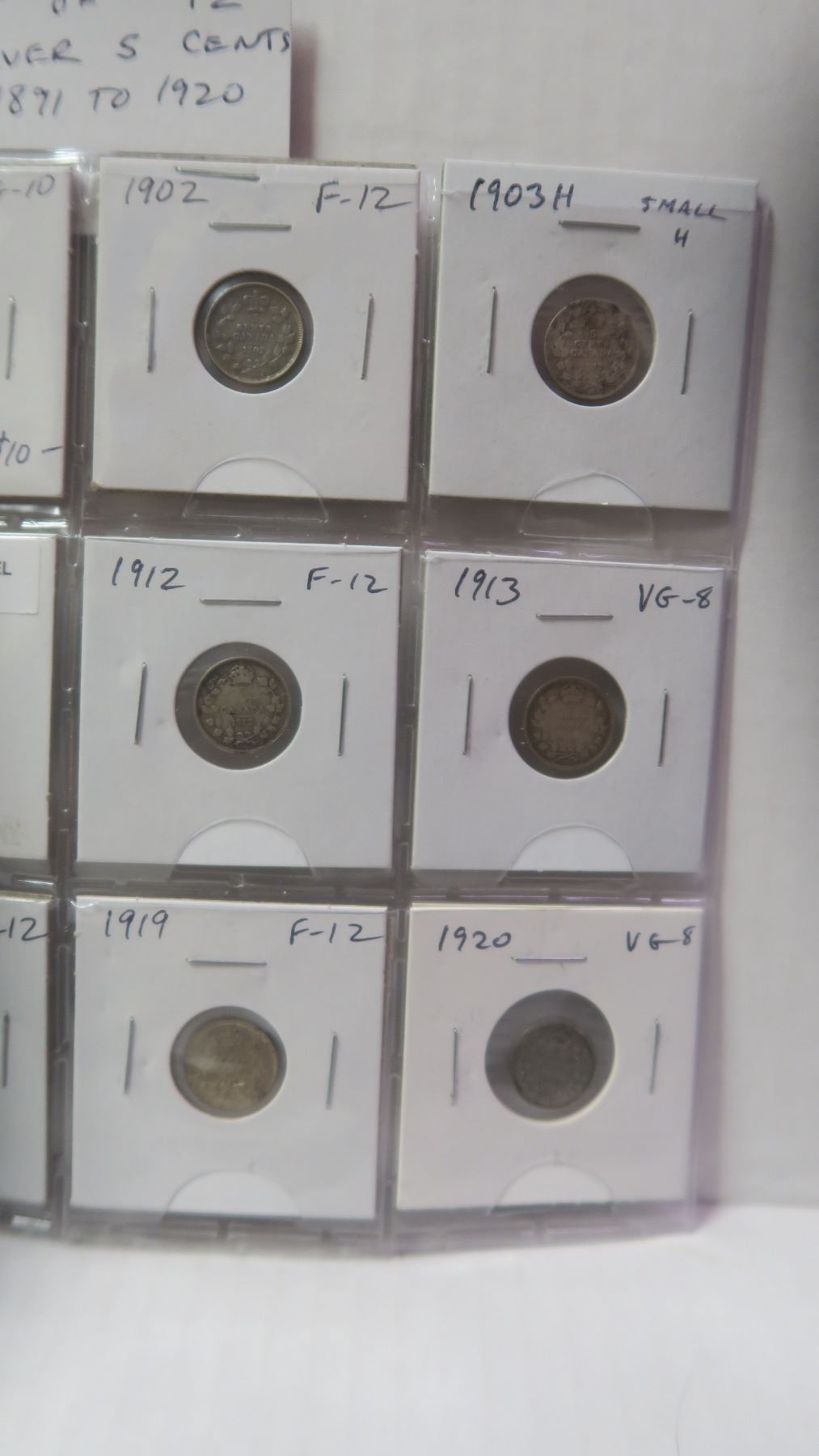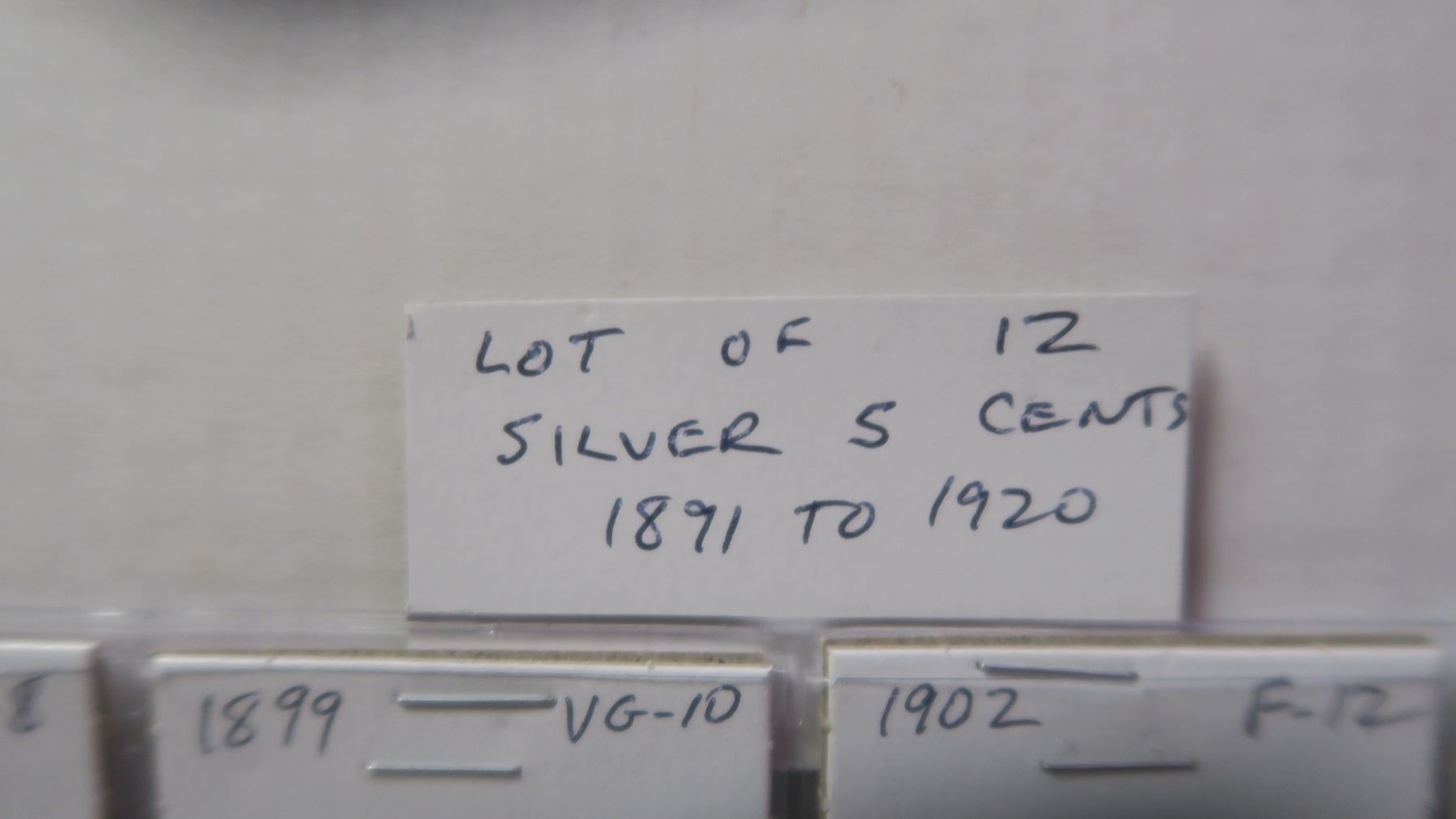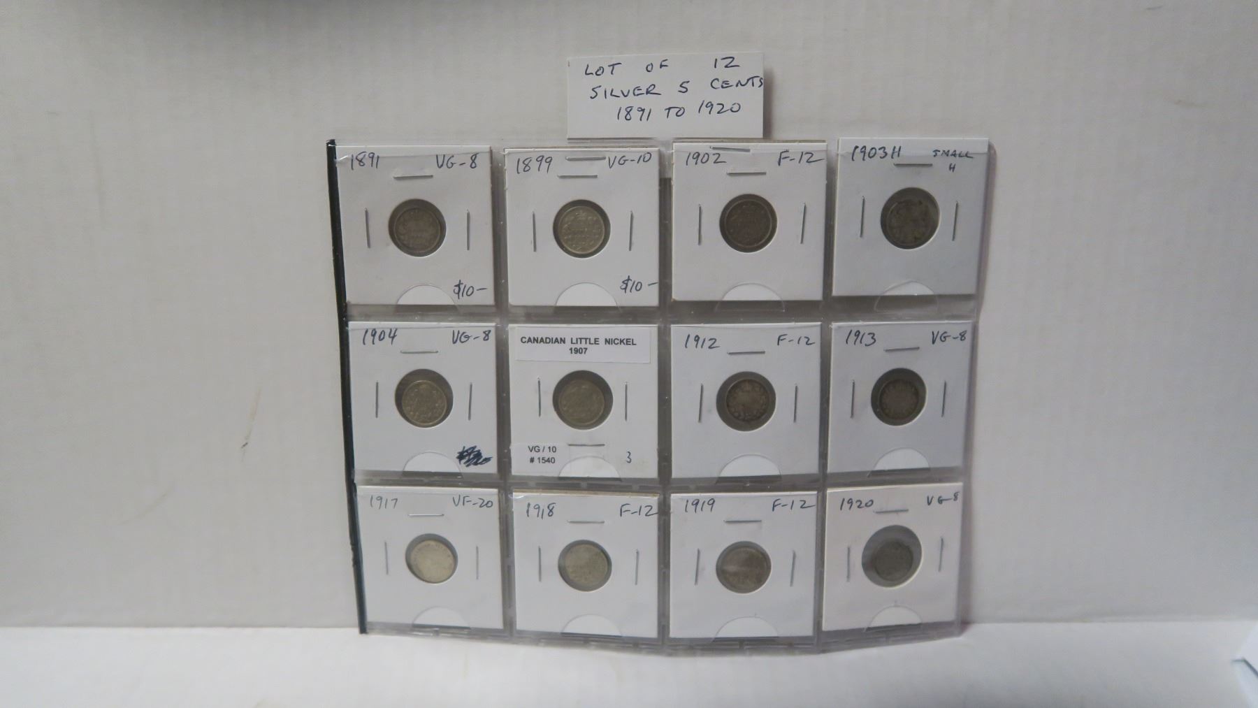 Lot of 12 Canadian Silver 5 Cents 1891 – 1920. Includes 1891, 1899, 1902, 1903H Small H, 1904, 1907,