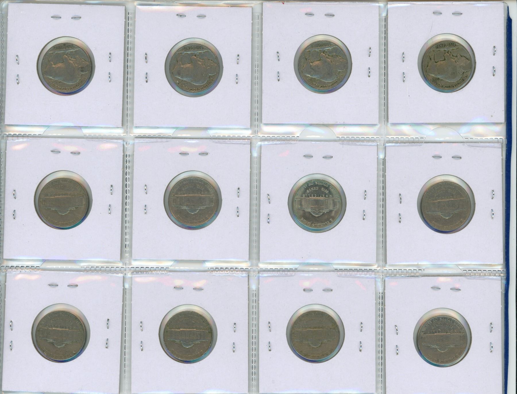 Lot of 12 U.S. Buffalo & Jefferson Nickels. Includes 1927, 1936, 1937, 1937D, 1940, 1952D, 1958D, 19