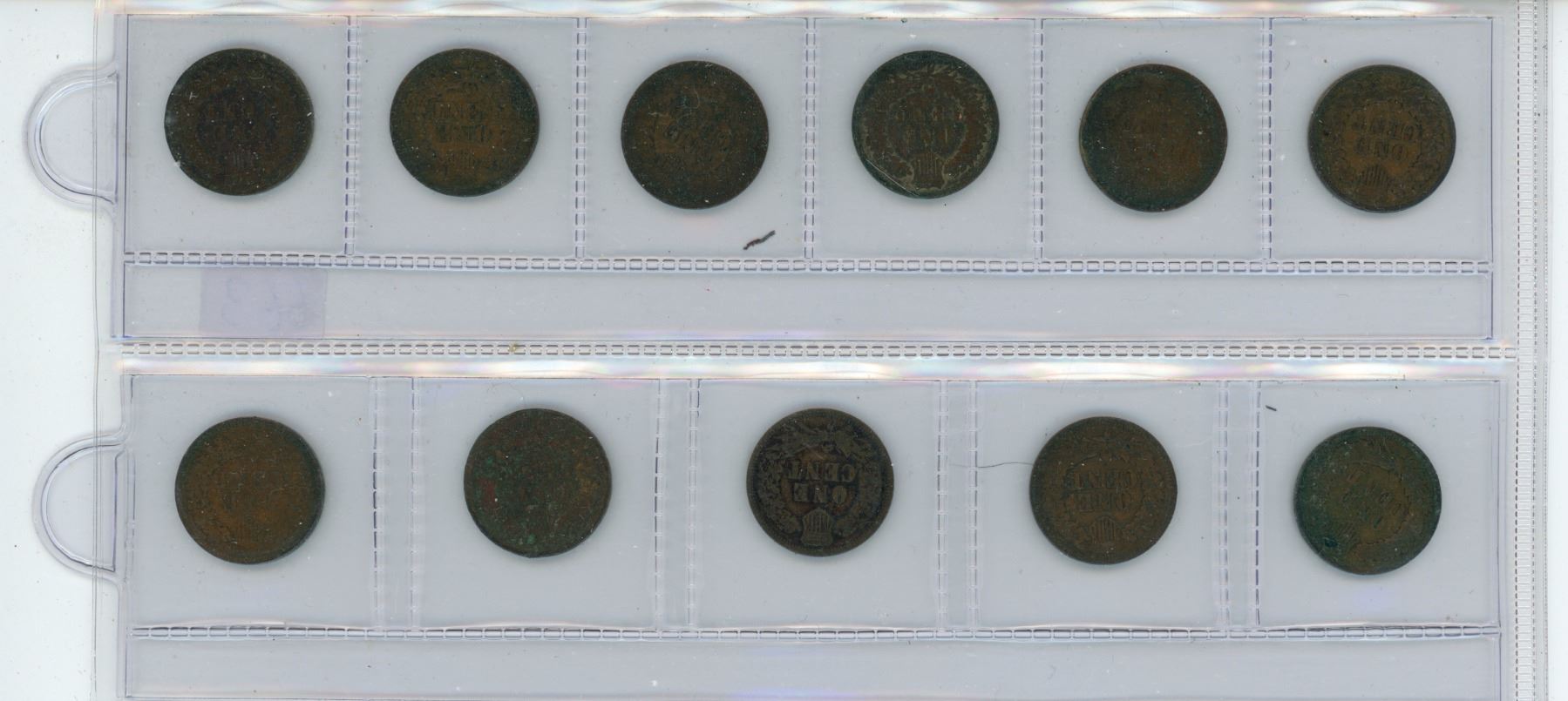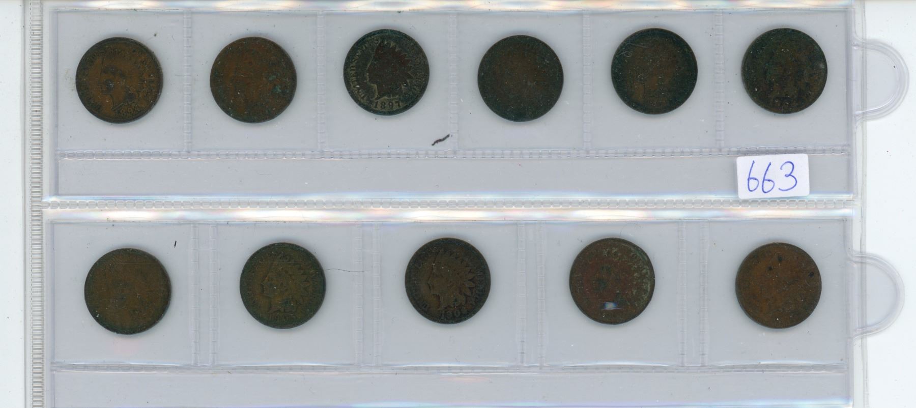 Lot of 12 U.S. Indian Head Cents. Includes 1894, 1895, 1897, 1900, 1901, 1902, 1904, 1905. 1906, 1907 & 1908.