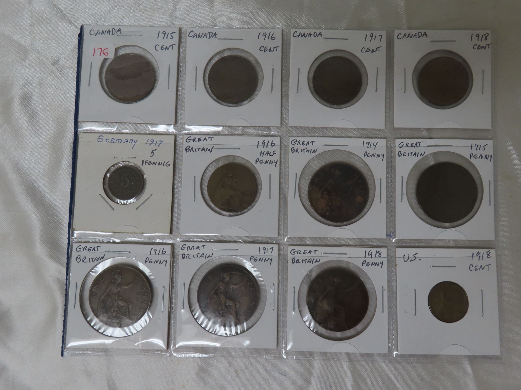 Lot of 12 World War I coins from Canada, Germany, Great Britain & U.S.A.
