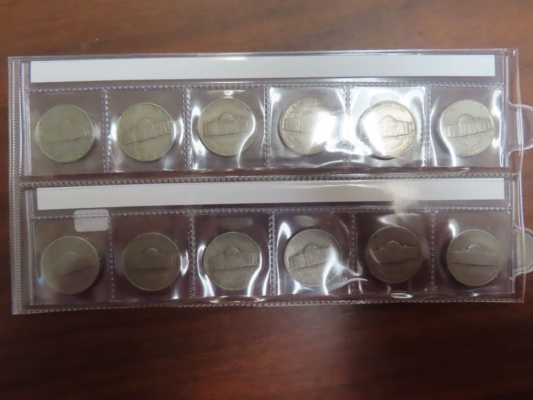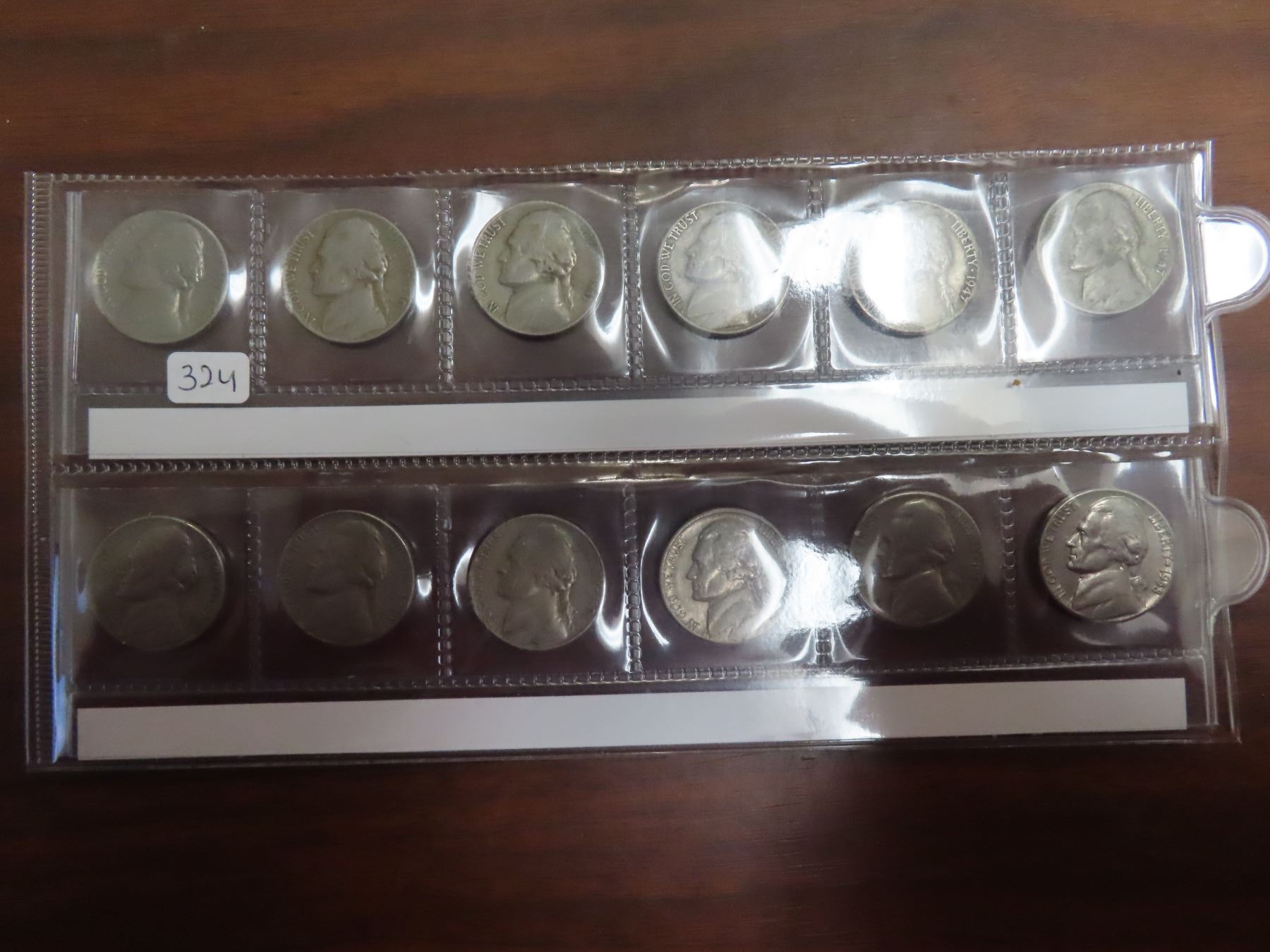 Lot of 12 old U.S Jefferson nickels. Dates include 1940, 1940D, 1941D, 1946, 1947D, 1947, 1948, 1949D, 1951D, 1952D, 1957D & 1958D.