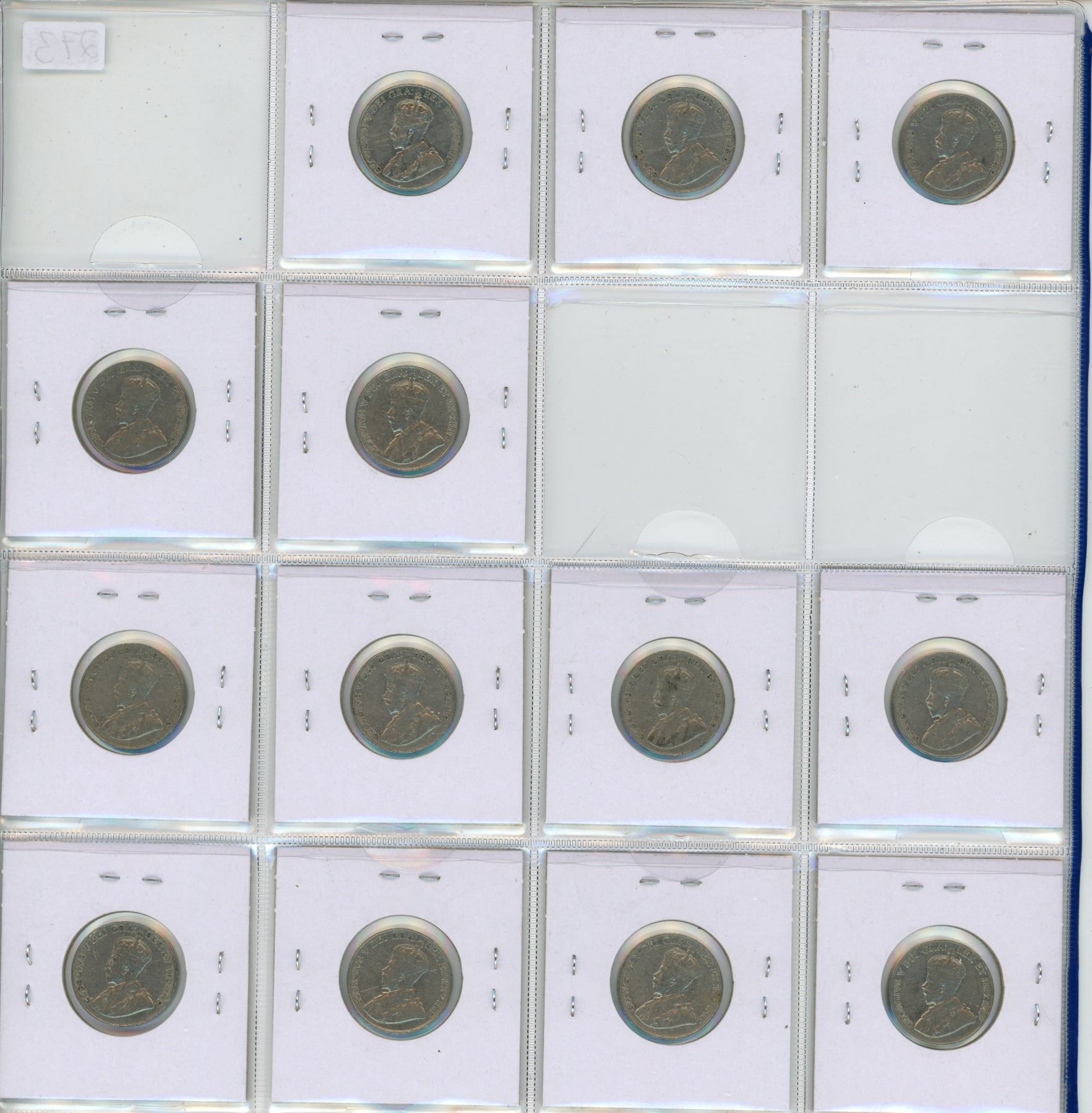 Lot of 13 Canadian King George V Nickel 5 Cents. Includes 1922, 1923, 1924, 1927, 1928, 1929, 1930,