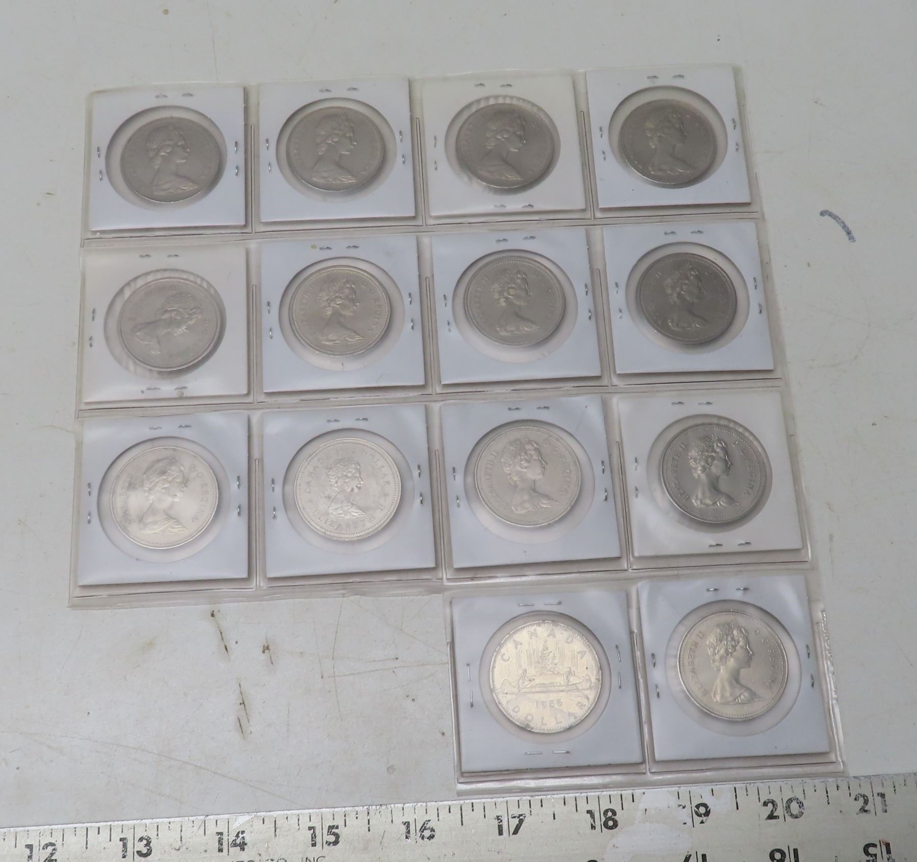 Lot of 14 Canadian Nickel Dollars. Includes 1968, 1969, 1971 BC, 1972, 1973 PEI, 1974 Winnipeg, 1975