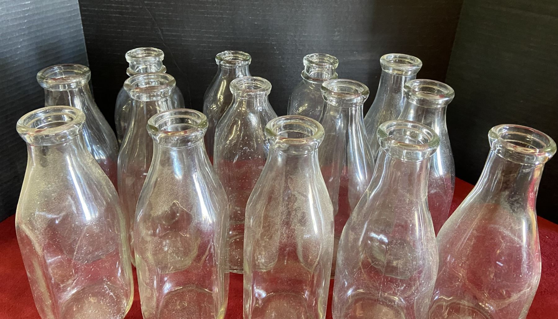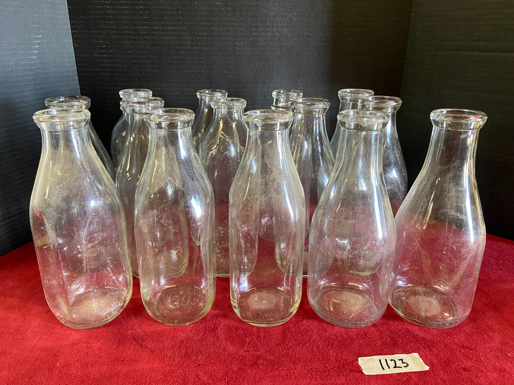 Lot of 14 Glass Milk Jugs - Various Shapes
