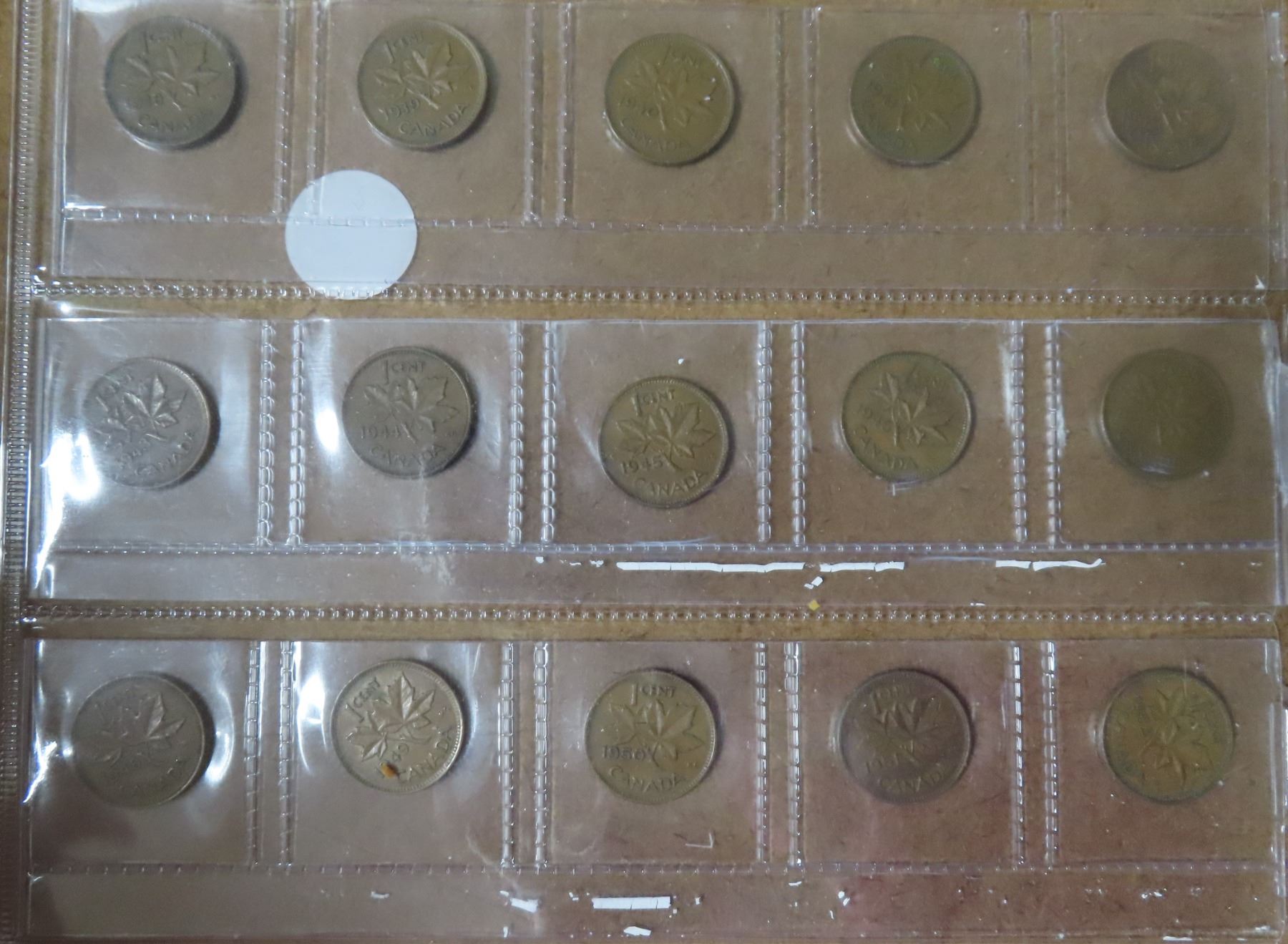 Lot of 15 Canadian George VI Small Cents. Includes 1938, 1939, 1940, 1941, 1942, 1943, 1944, 1945, 1
