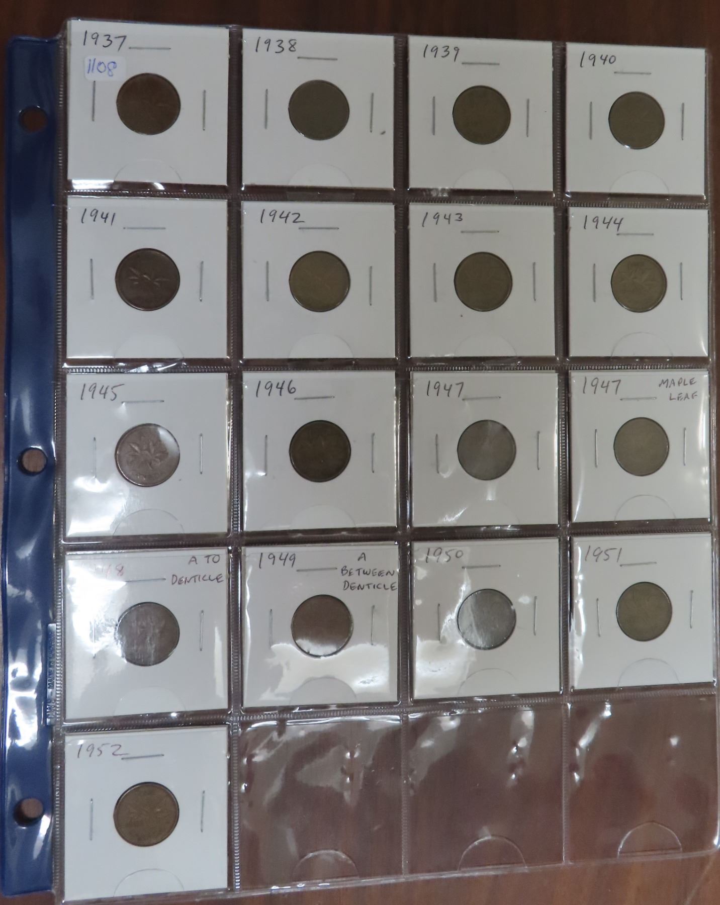 Lot of 17 Canadian George VI Small Cents. Includes 1937, 1938, 1939, 1940, 1941, 1942, 1943, 1944, 1945, 1946, 1947, 1947 Maple Leaf, 1948 A to Denticle, 1949 A Between Denticles, 1950, 1951 & 1952.