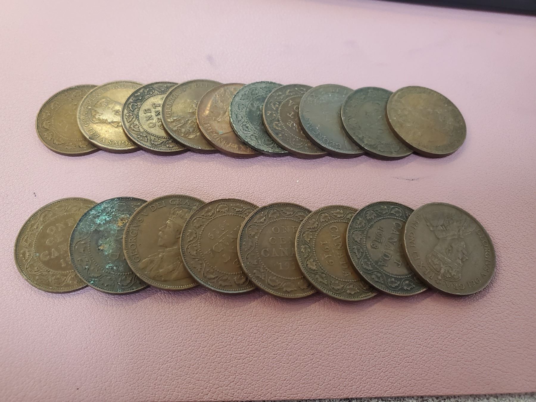 Lot of 18 Canada King George V Large cents 1911-1920