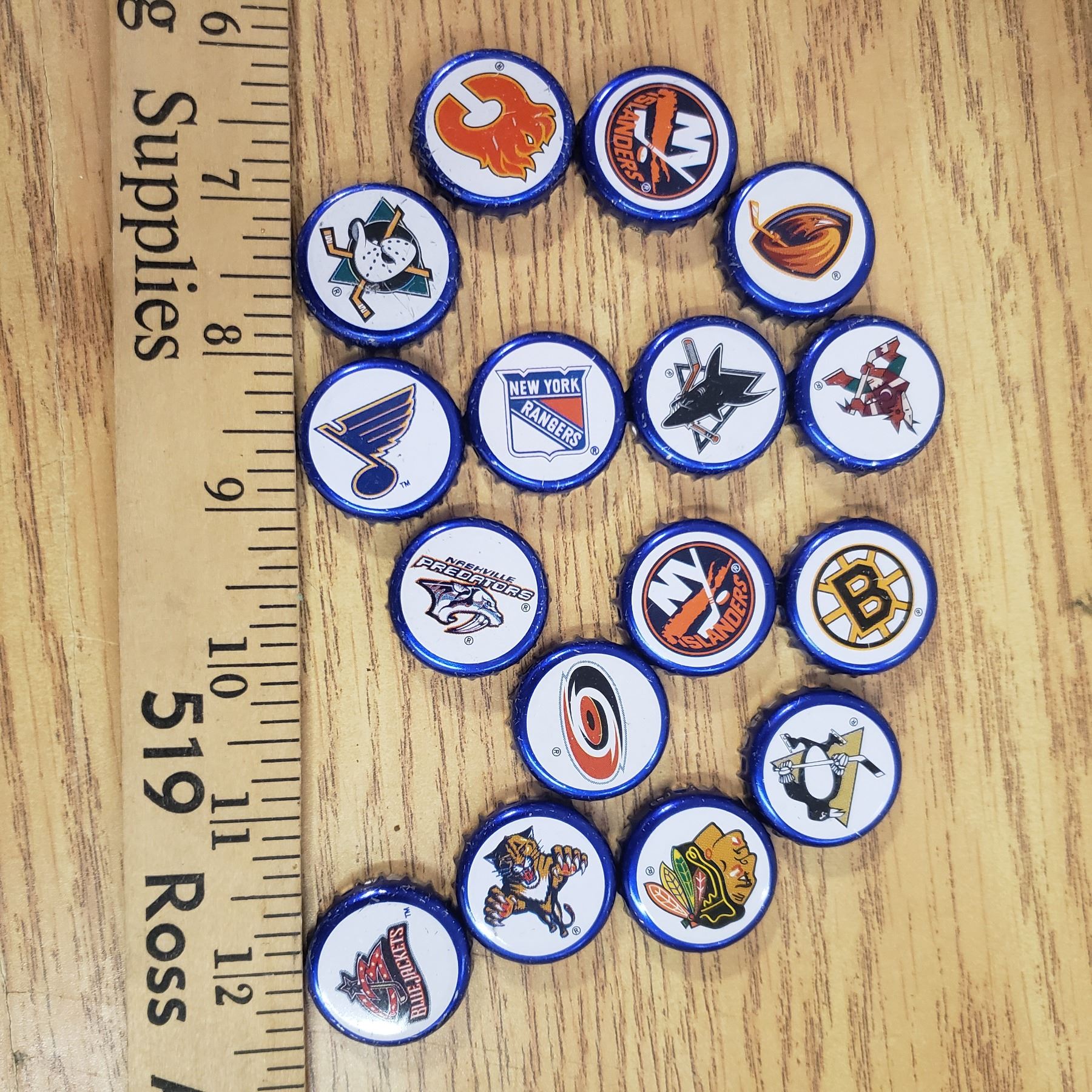 Lot of 18 NHL hockey team Beer bottle caps