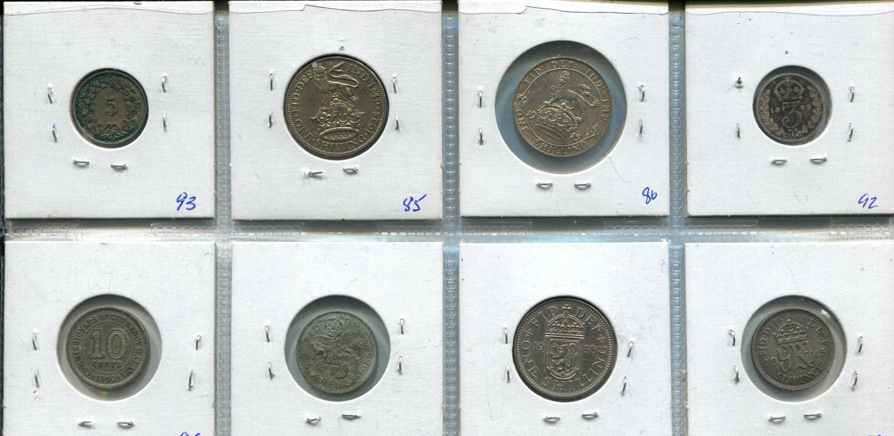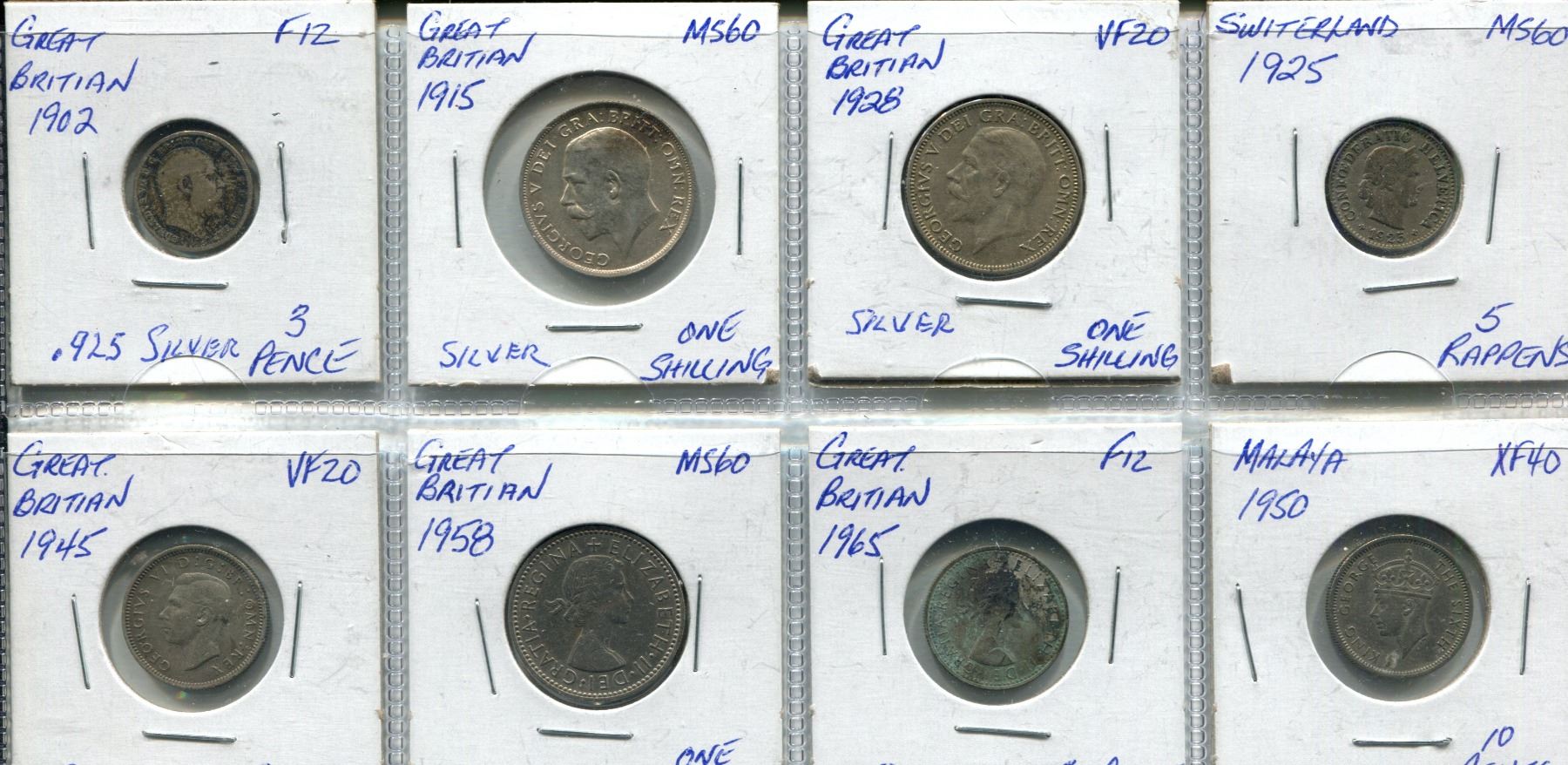 Lot of 1902-1965 Great Britain (6), Swiss, Malaya coins; 5 are silver (8)