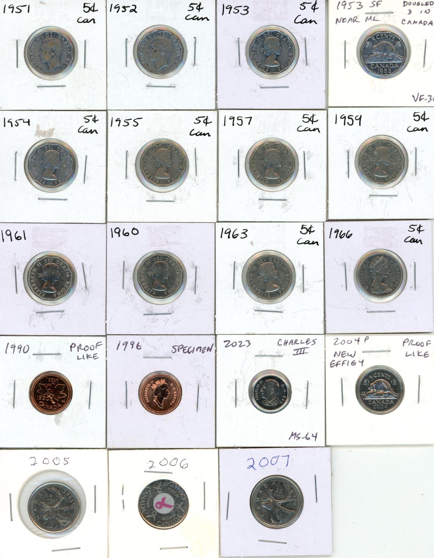 Lot of 1950's, 1960's 25 Cents, 1990, 1996 One Cent Proof Like, 2023 10 Cents, 2004 Five Cents, 2005-2007 25 Cents Coins.