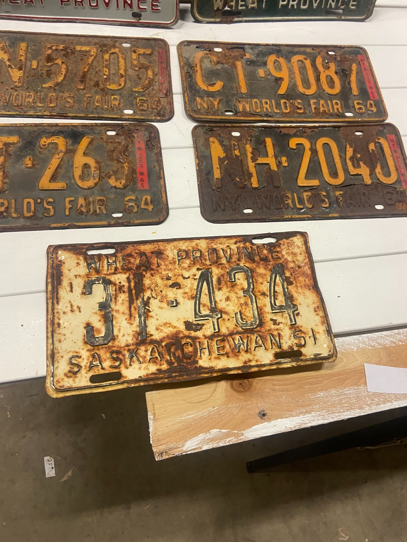 Lot of 1950's Saskatchewan plates & 4 1964 N.Y. Worlds fair plates