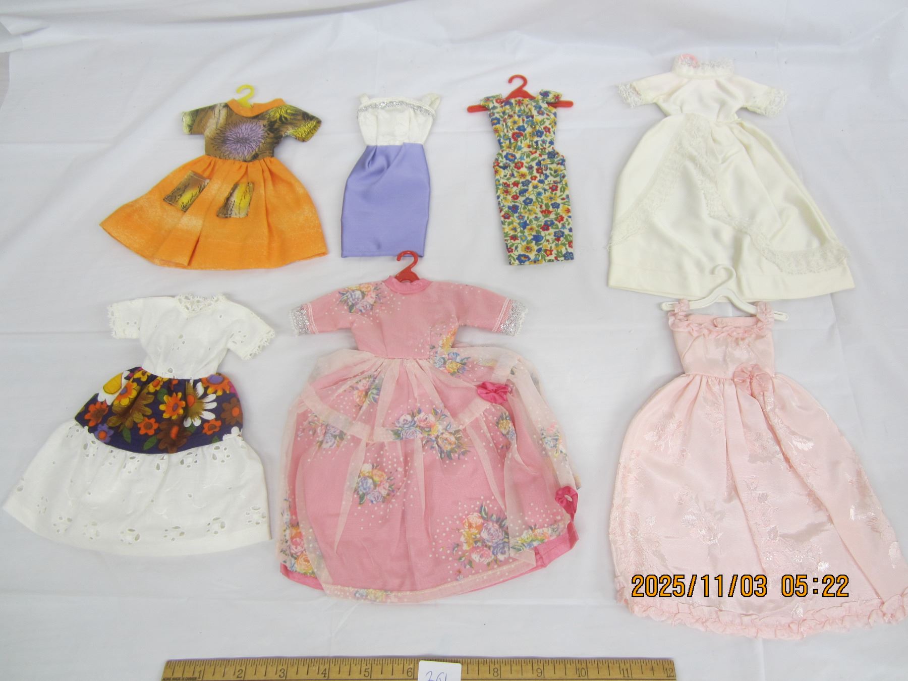 Lot of 1960's Barbie Doll Clothing 7 Dresses
