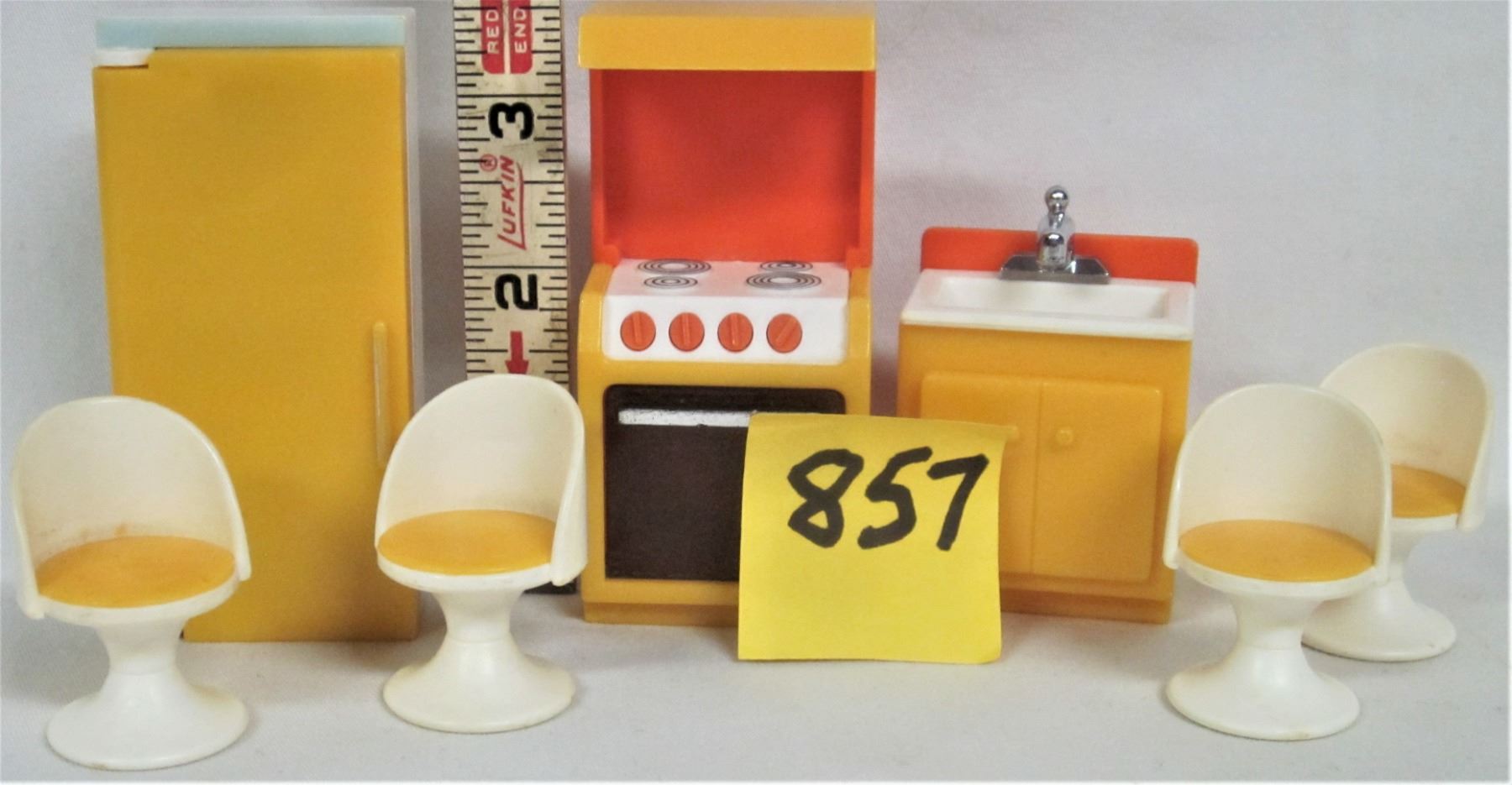 4 1970's Dinette chairs #251, #252 Made In Hong Kong 1970's kitchen appliances set - fridge, stove, sink