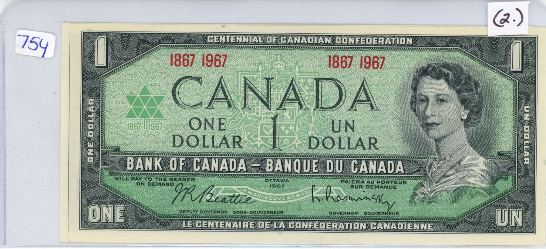 Lot of 2 1867-1967 canada $1 beattie/rasminky (2.)