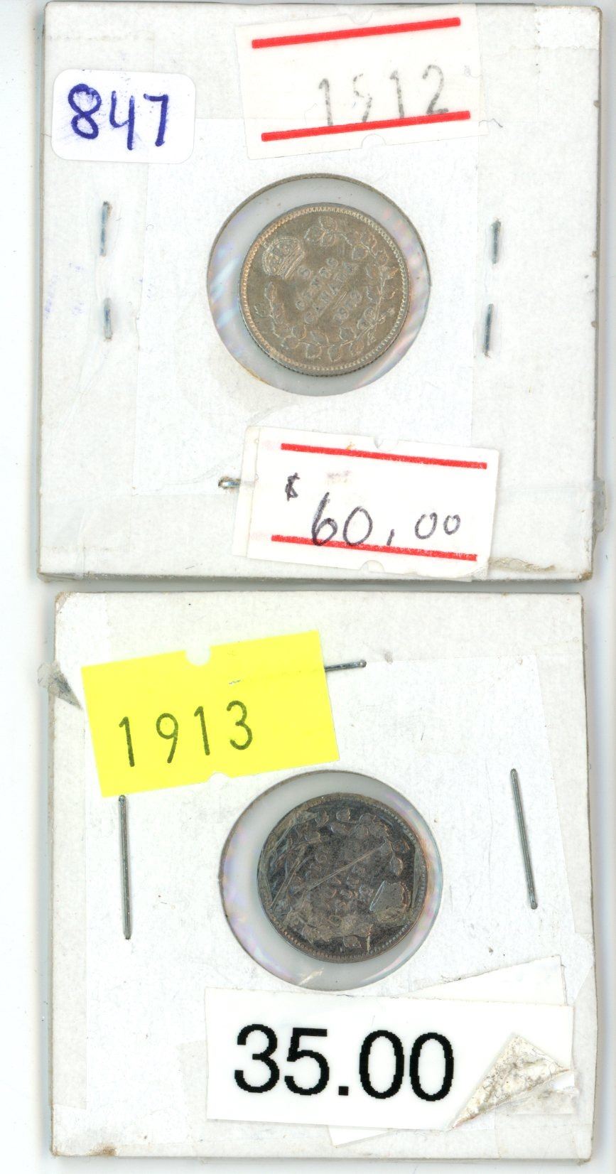 Lot of 2 (1912-1913) canadian silver 5 cent coins