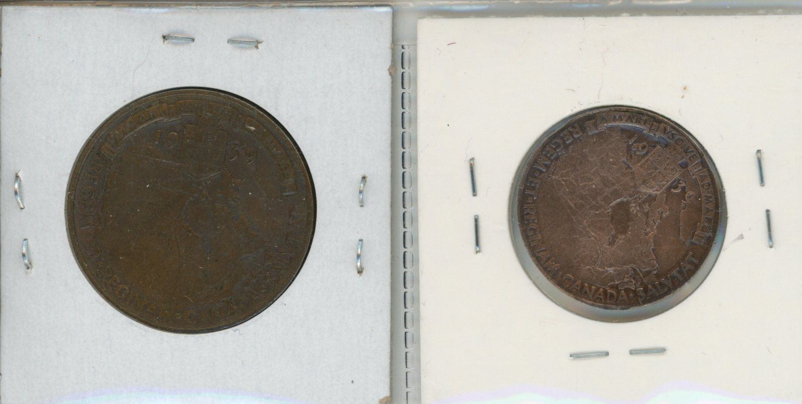 Lot of 2 1939 Royal Visit to Canada Medals. Includes Small bronze & Large bronze medals. Both Lustrous.