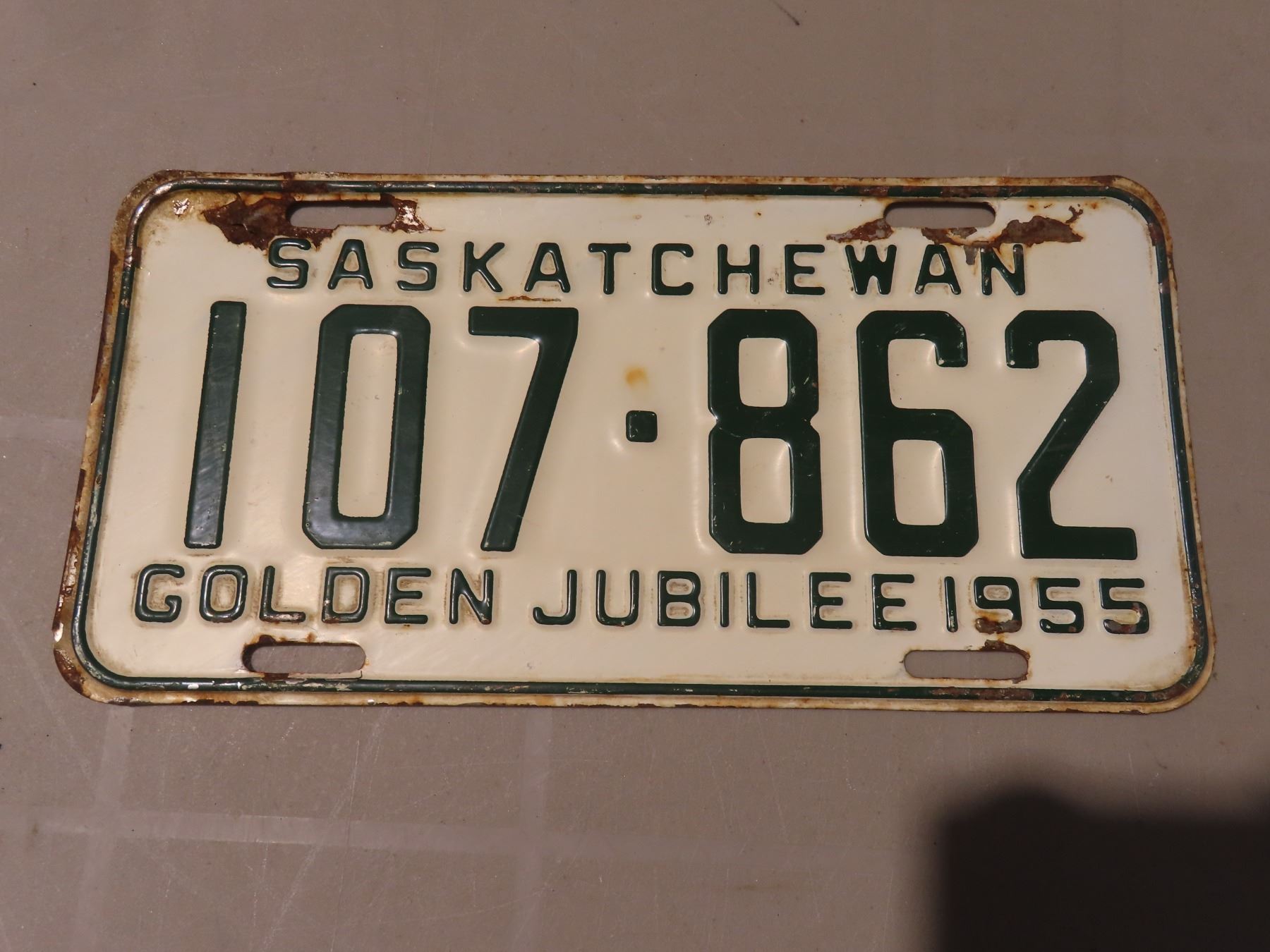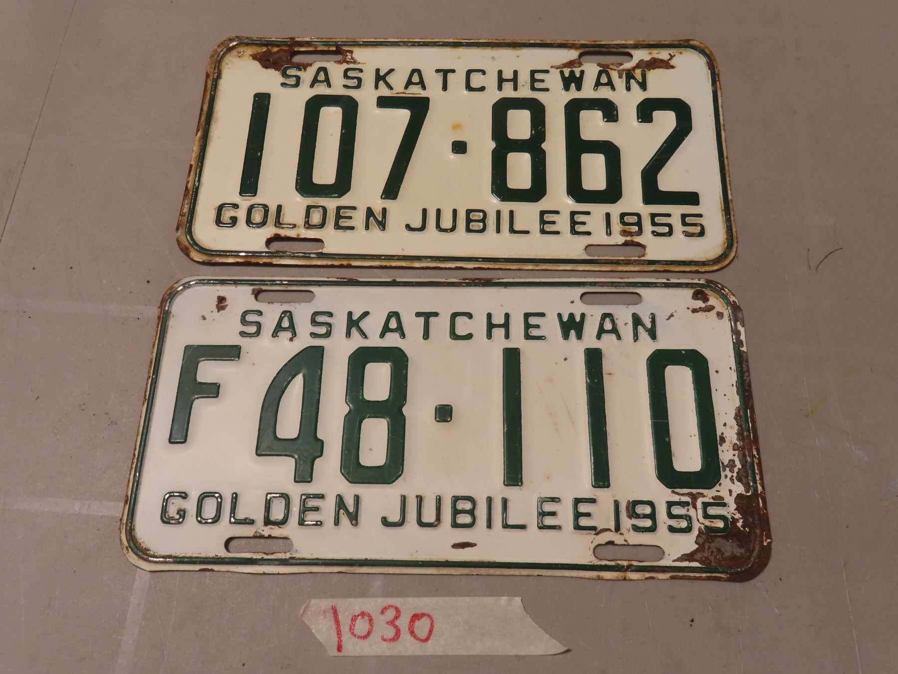 Lot of 2 1955 SK golden jubliee license plates