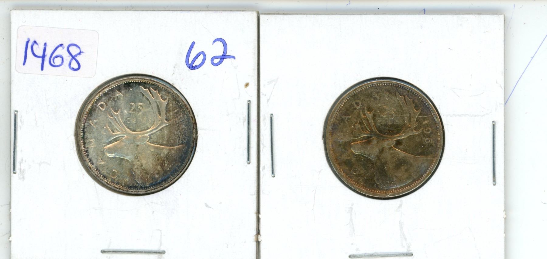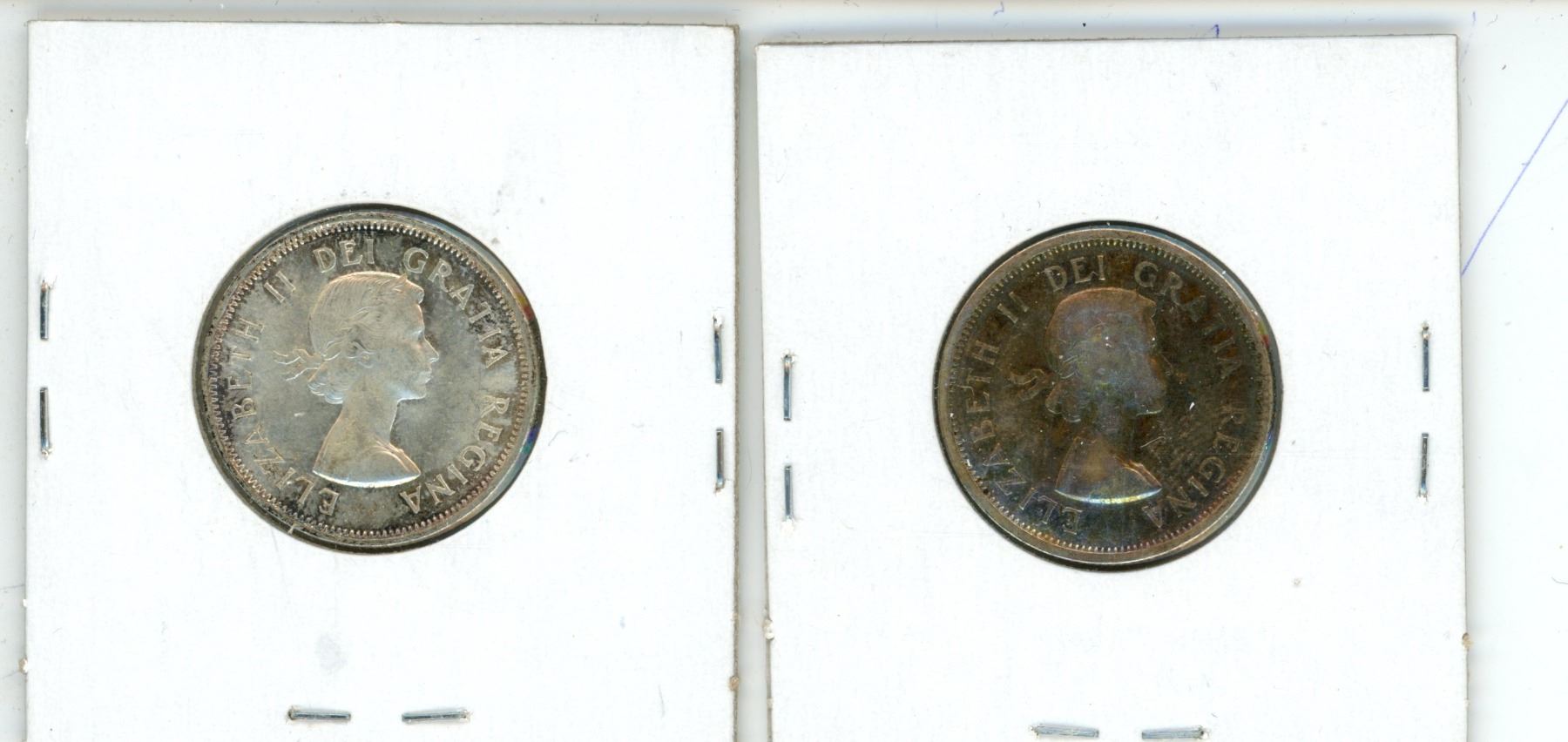 Lot of 2 (1962 and 1964)canadian silver quarters