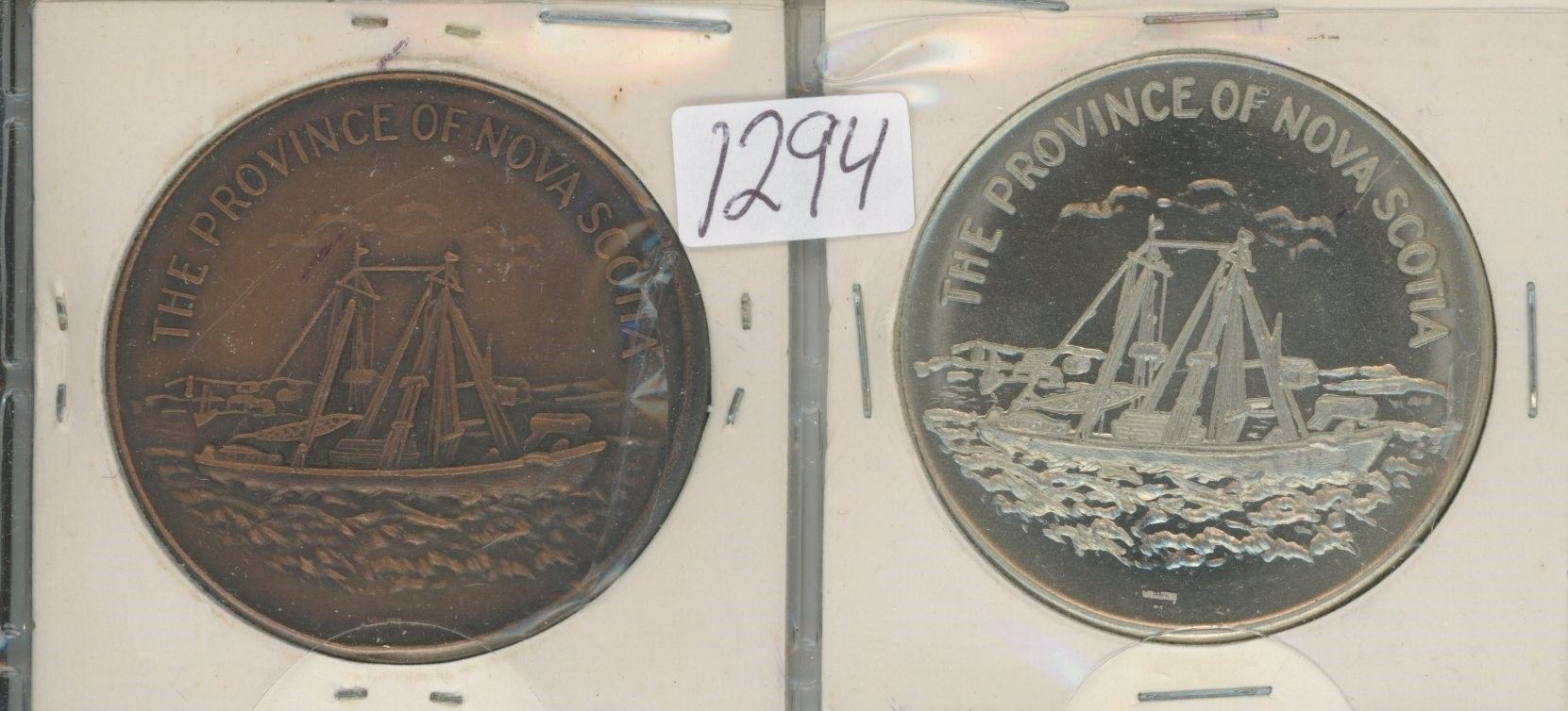 Lot of 2 1967 Canadian Centennial Medals from Nova Scotia. Includes Bronze & Nickel-Silver. Mintage of 2500. BU. Nice.