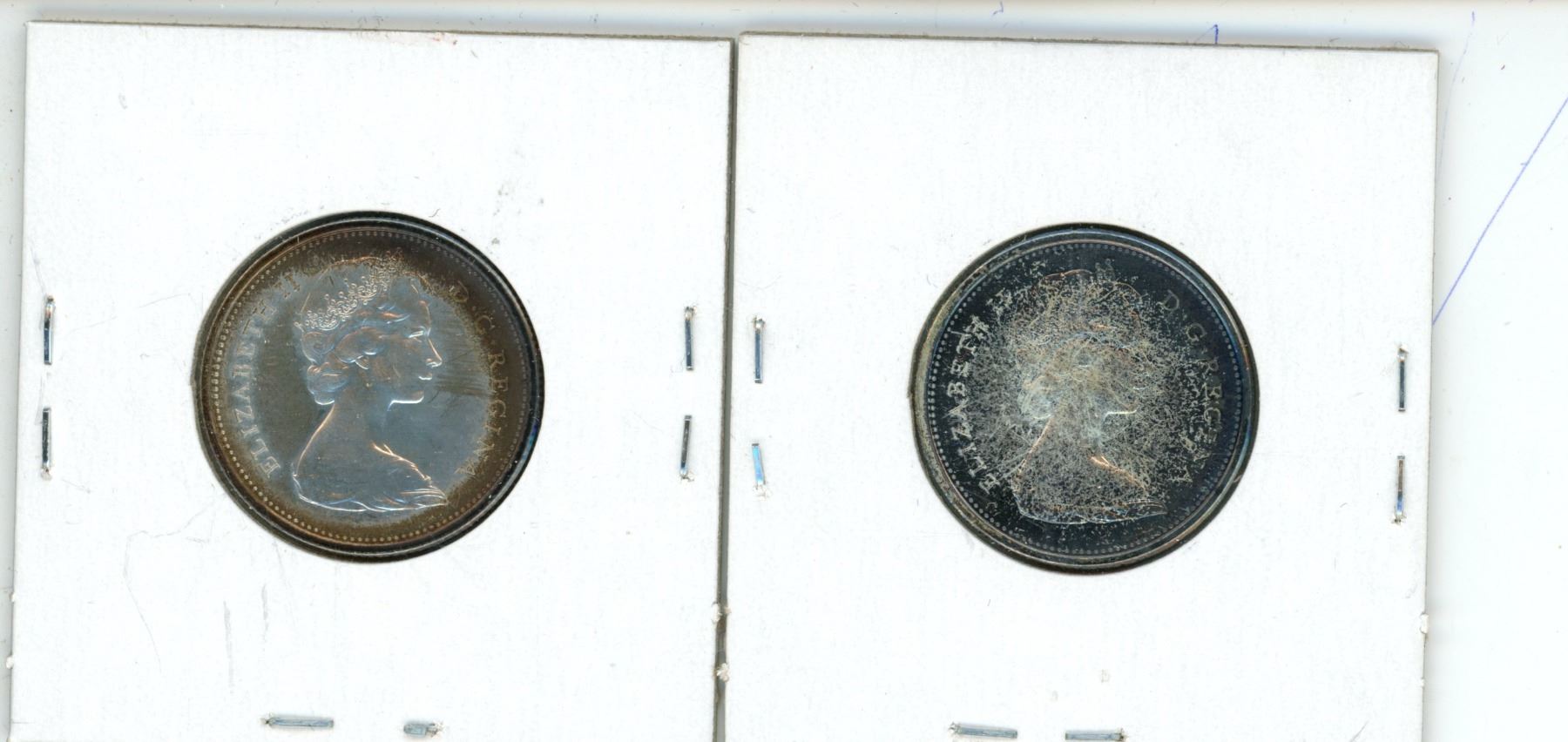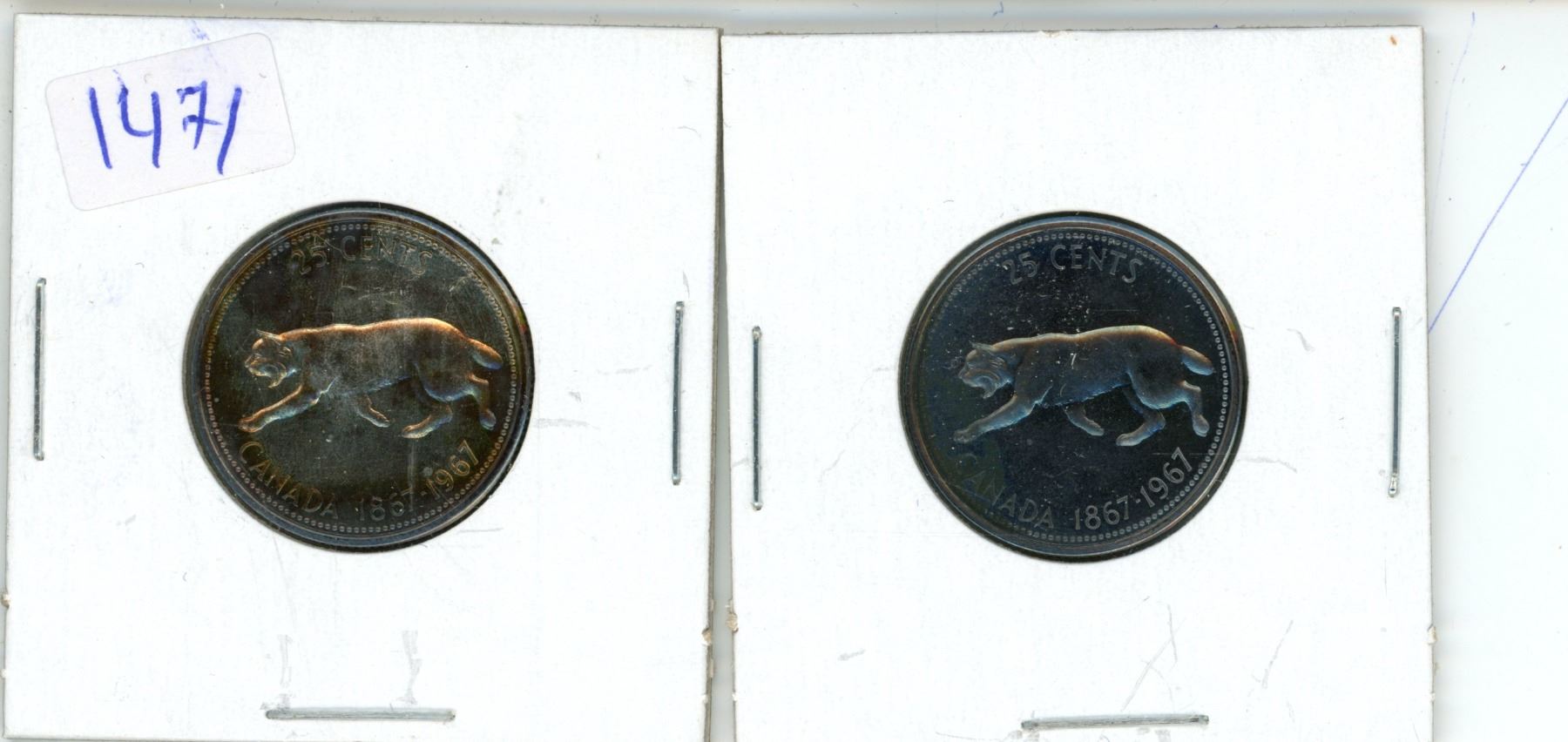 Lot of 2 1967 canadian silver quarters