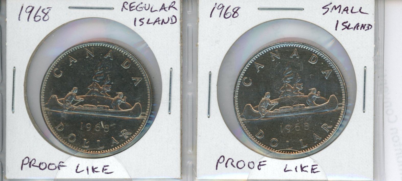 Lot of 2 1968 Nickel Dollar varieties. Includes regular Island and Small Island. Both Proof Like from PL sets.