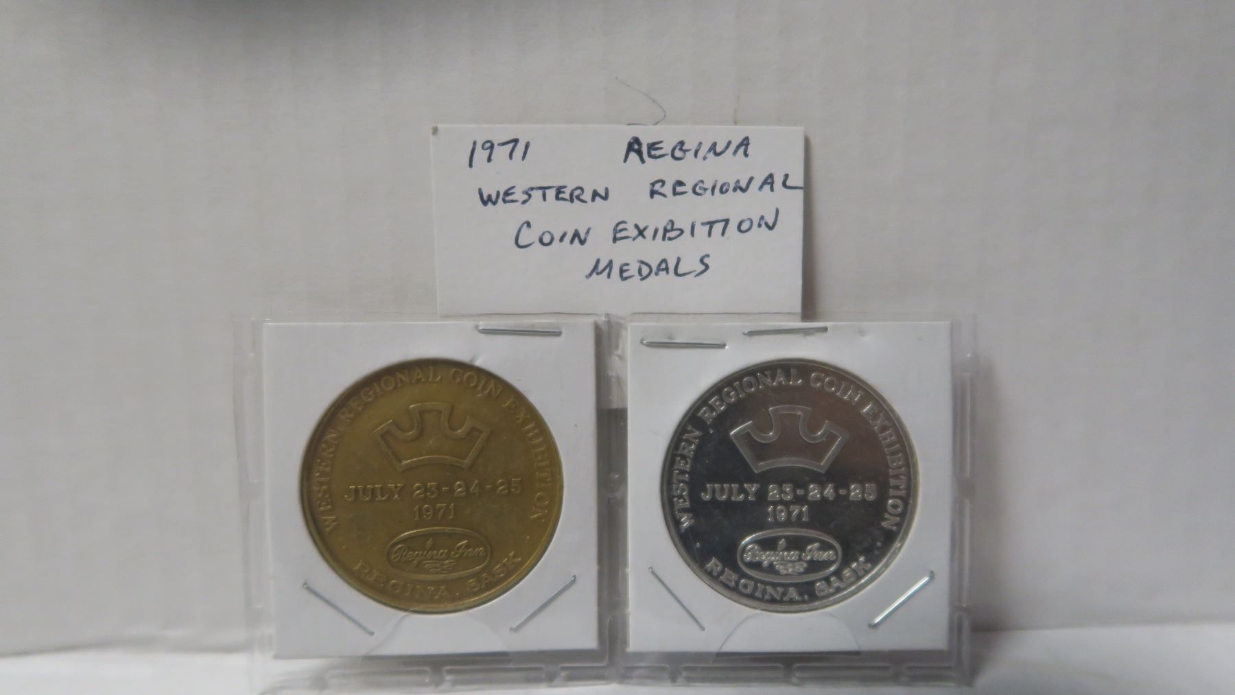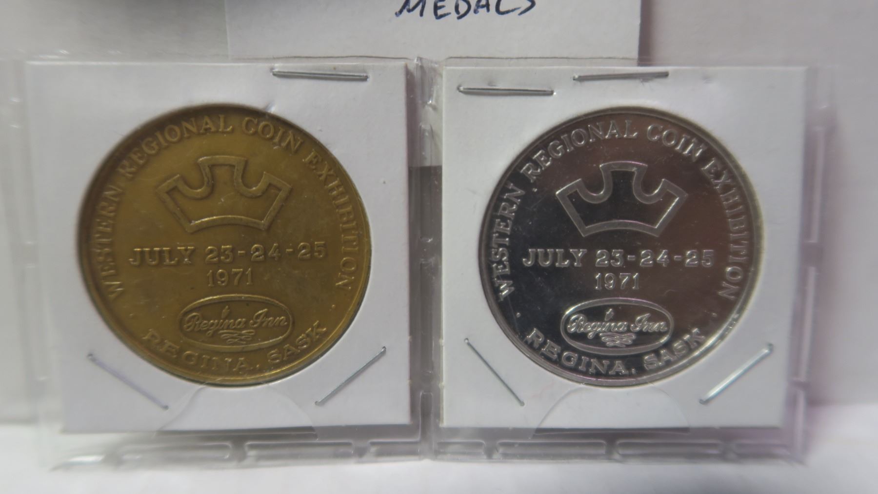 Lot of 2 1971 Regina Western Regional Coin Exhibition Medals. Includes Brass & Nickel. Uncirculated.