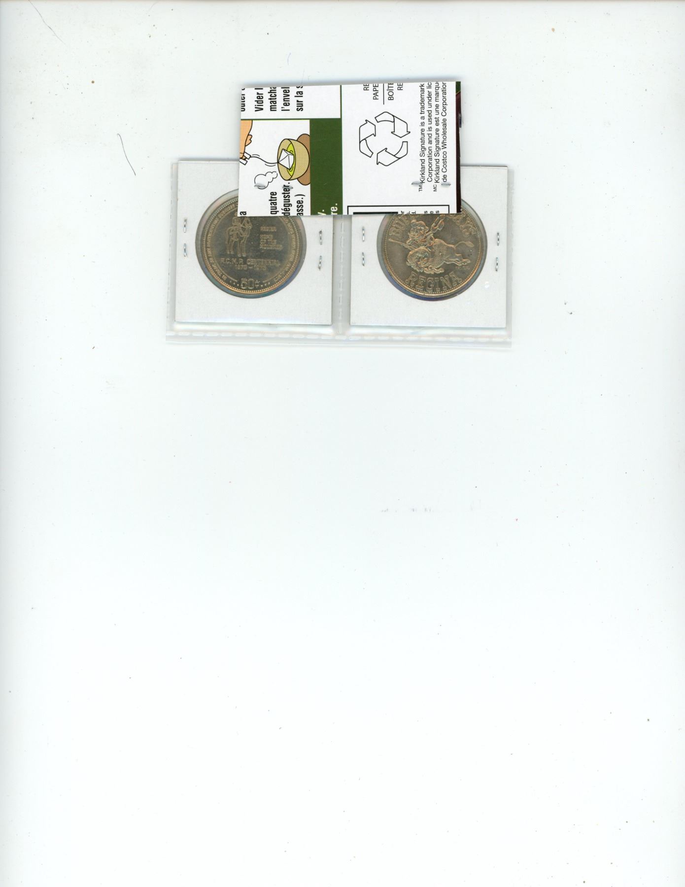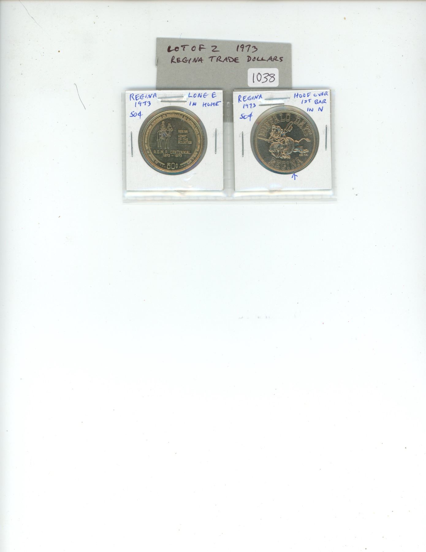 Lot of 2 1973 Regina Buffalo Days Trade Dollars. They are denominated as 50 Cents. Includes Long E in HOME and Hoof over First Bar in N. Nice.