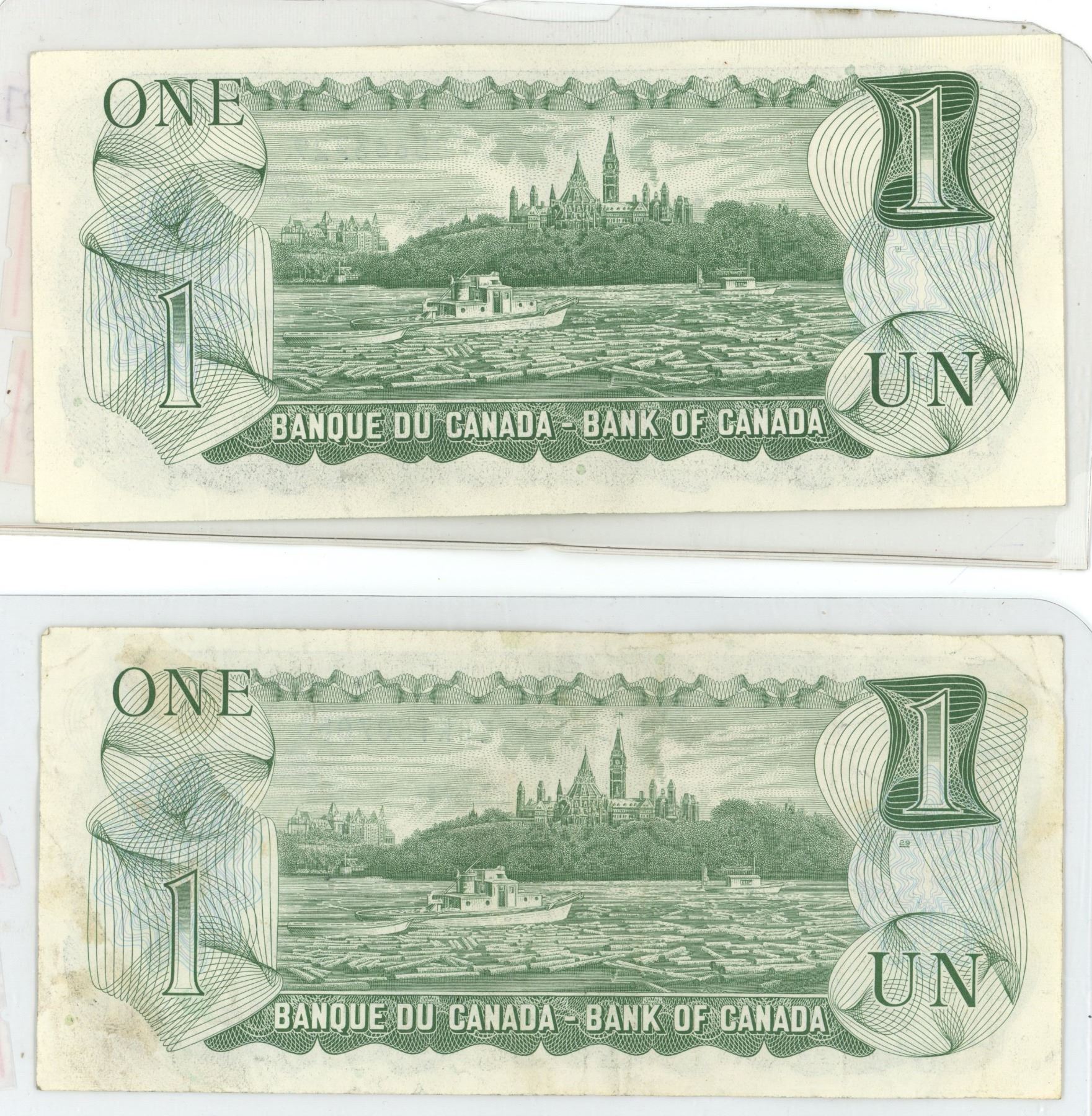 Lot of 2 1973 baank of canada $1 bills- AFG5663729 and ECK1507055