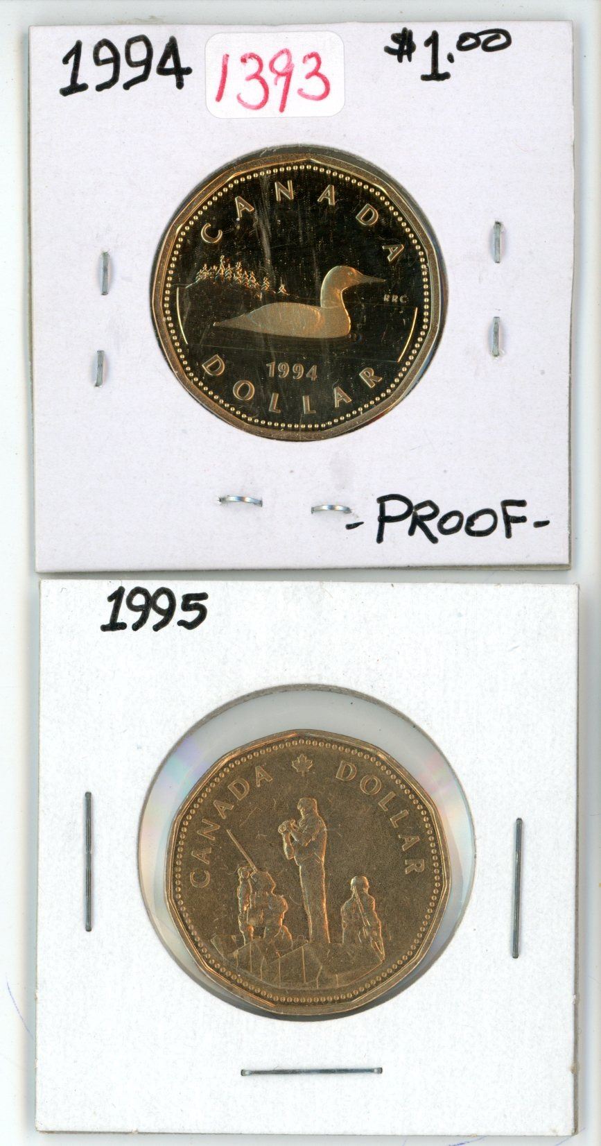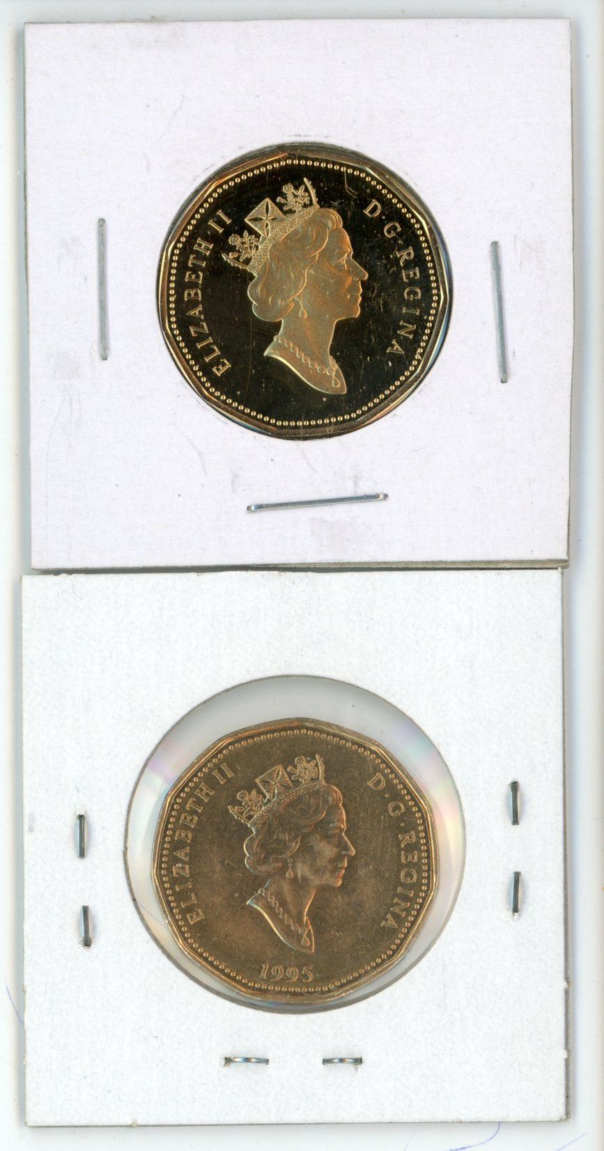 Lot of 2 (1994 and 1995) canadian loonies