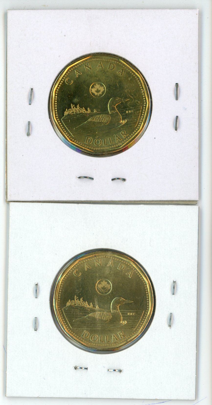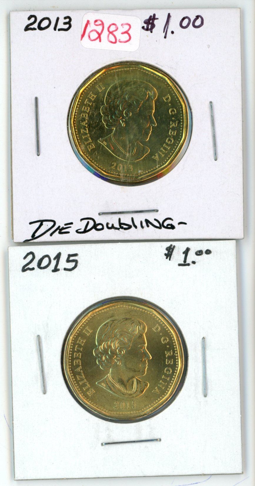 Lot of 2 (2013 die doubling and 2015) Canadian Loonie