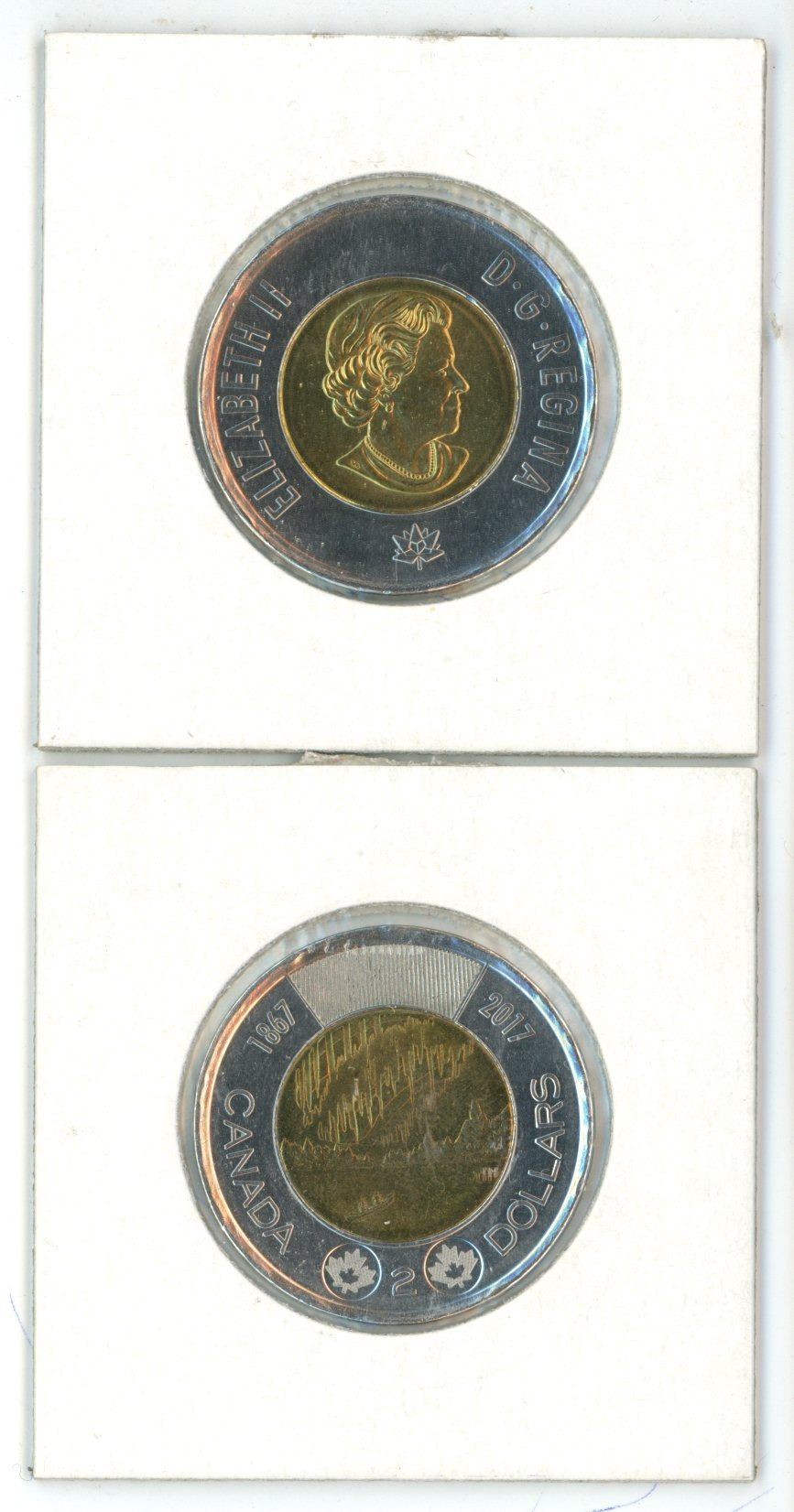 Lot of 2 (2017 glow in the dark and 2017 northern lights) canadian toonies