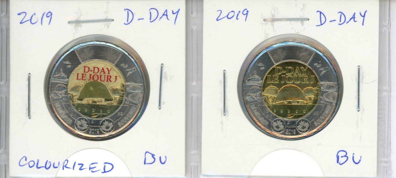 Lot of 2 2019 D-Day Toonies. Includes Colourized and uncolourized. Both are BU from an original Mint roll.