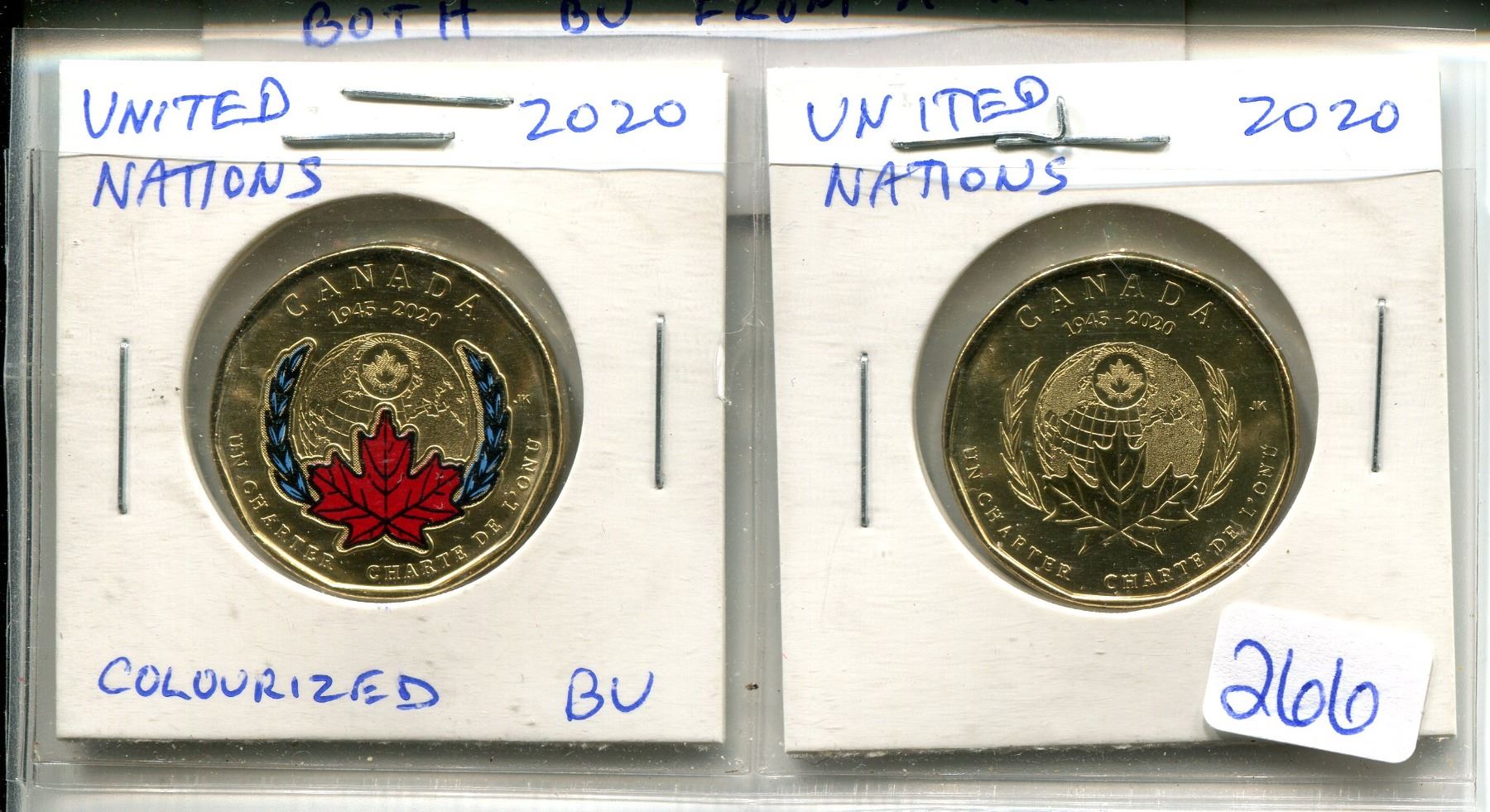 Lot of 2 2020 United Nations Toonies. Includes colourized and regular. Both BU from a roll.