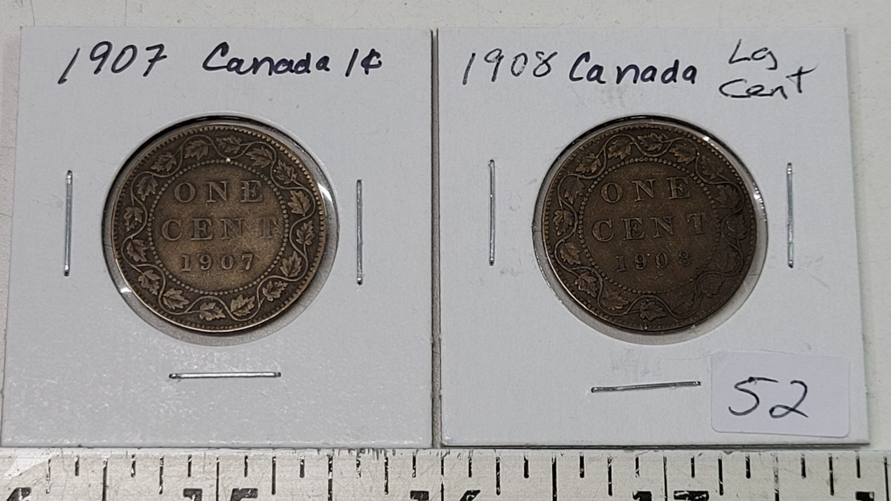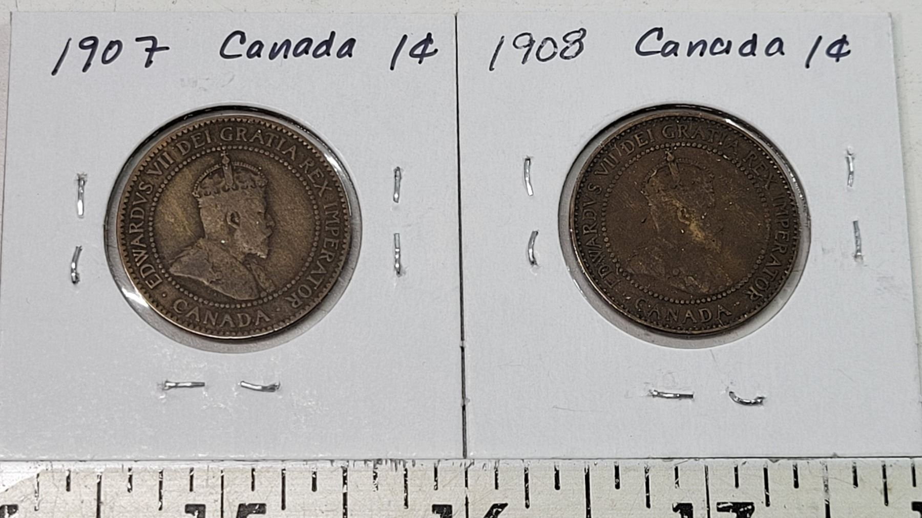 Lot of 2 Canada Large Cents: 1907 & 1908
