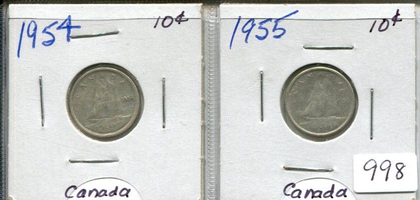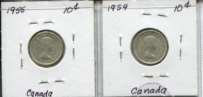 Lot of 2 Canada Silver 10¢: 1954 & 1955