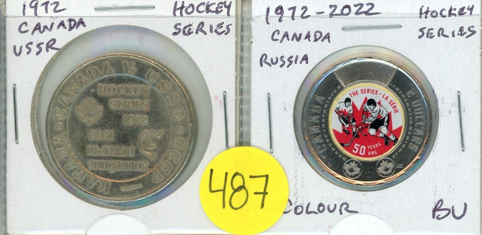 Lot of 2 Canada – USSR 1972 Hockey Series. Includes the original 1972 medal and the 1972 – 2022 Colourized Hockey Toonie.