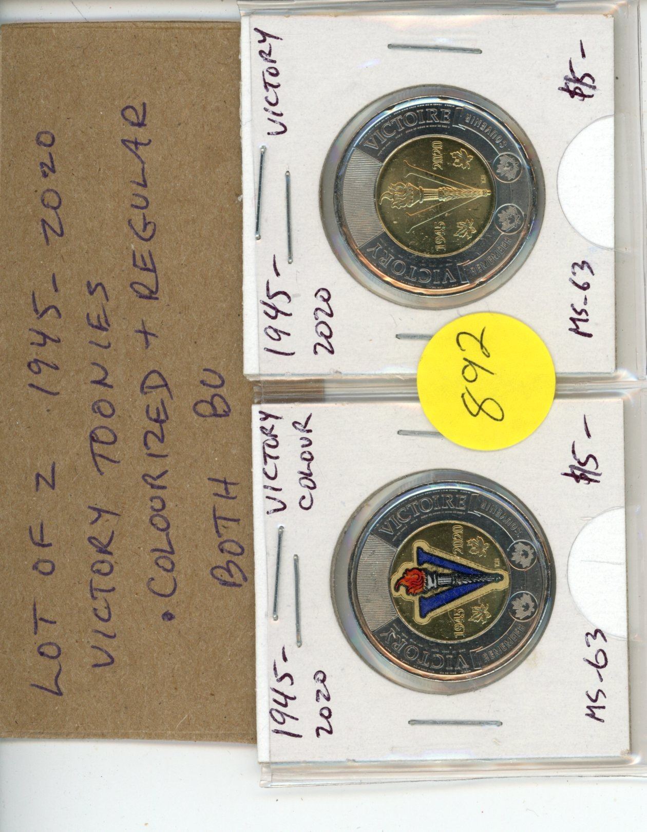 Lot of 2 Canadian 1945- 2020 Victory Toonies. Colourized and Regular. Both BU from an original roll.