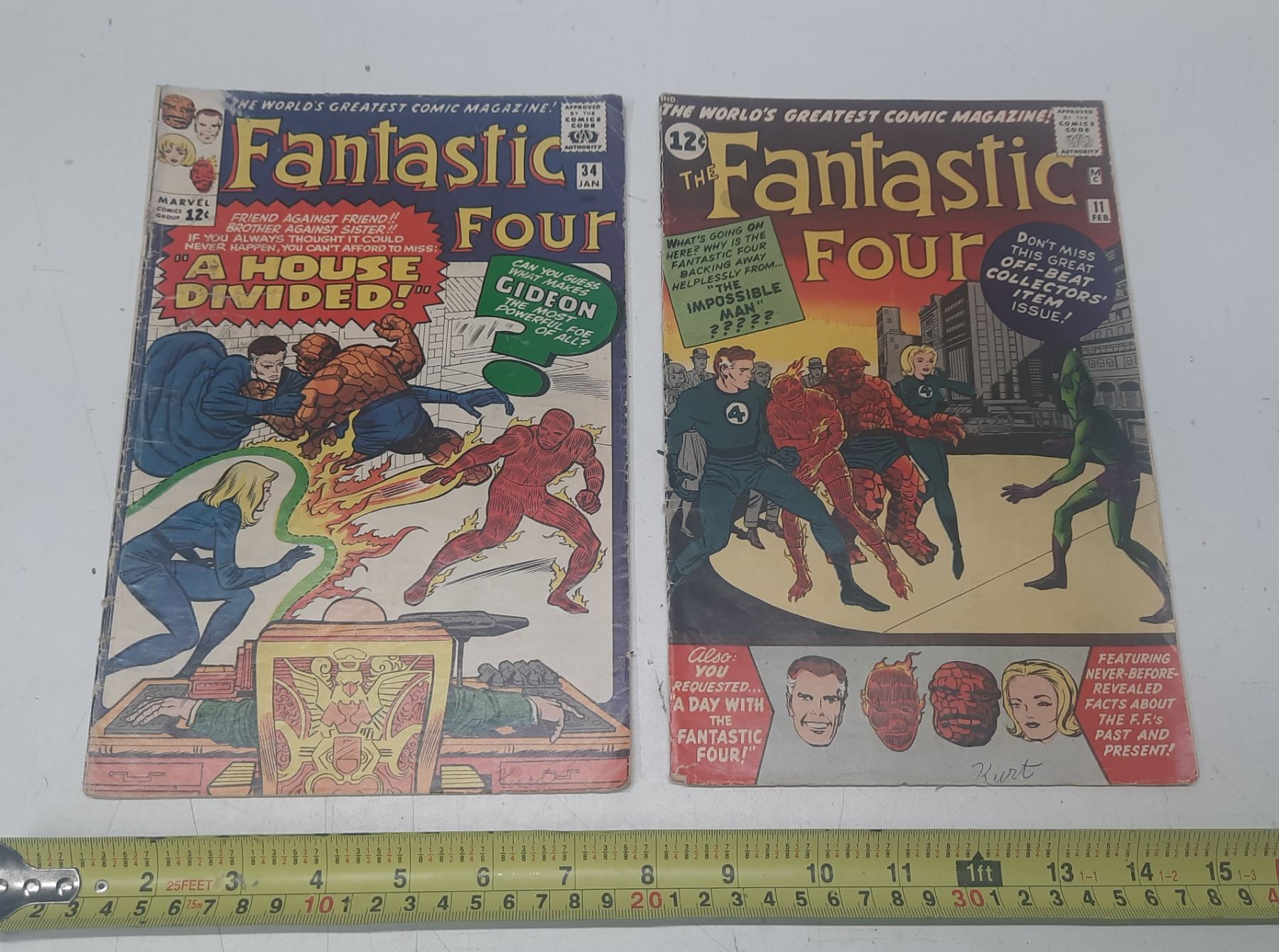 Lot of 2 Fantastic Four Comics. #11 1963 & #34 1965. Used.