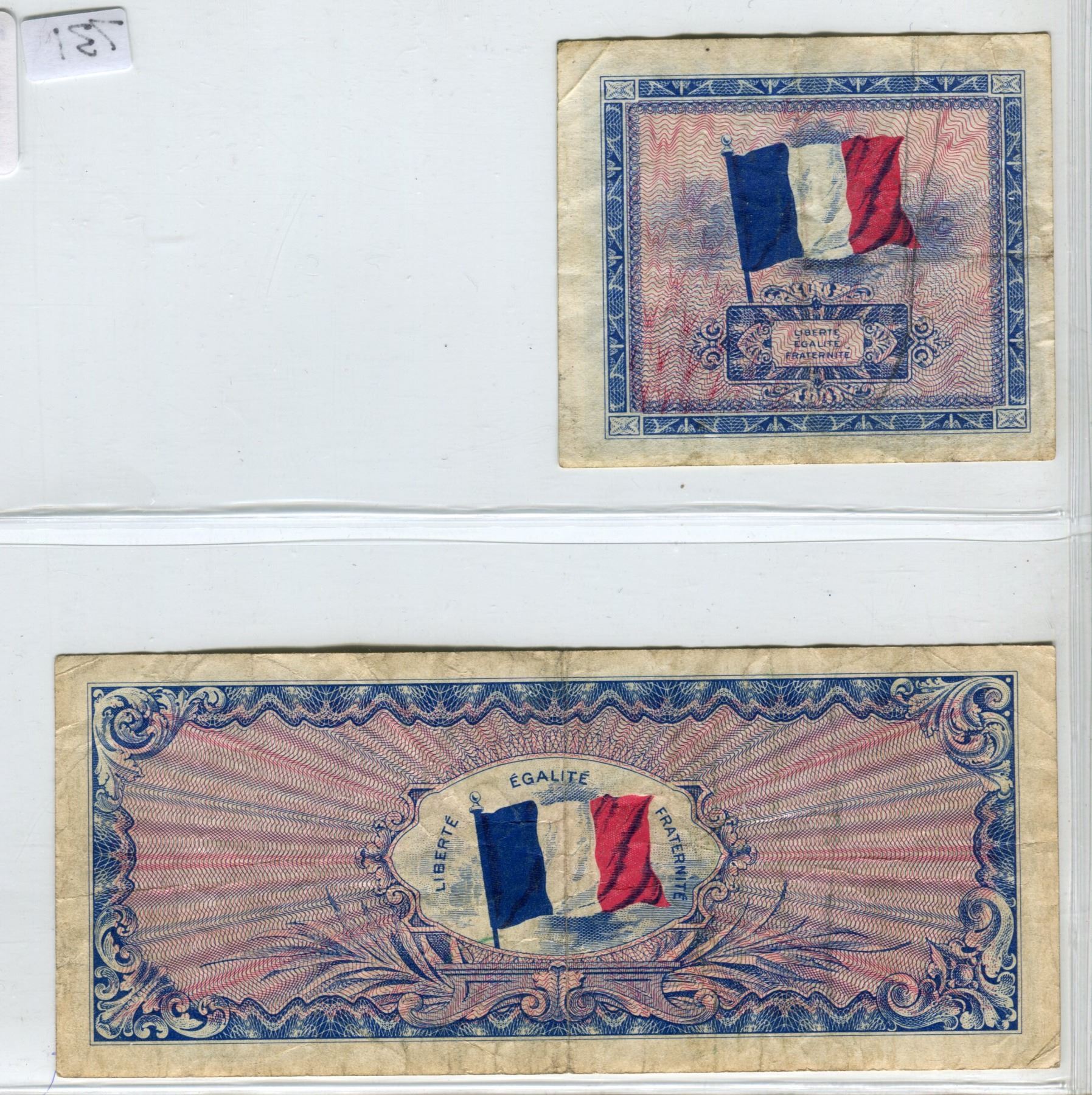 Lot of 2 France Allied Military Currency. 1944 5 Francs & 1944 50 Francs VF.