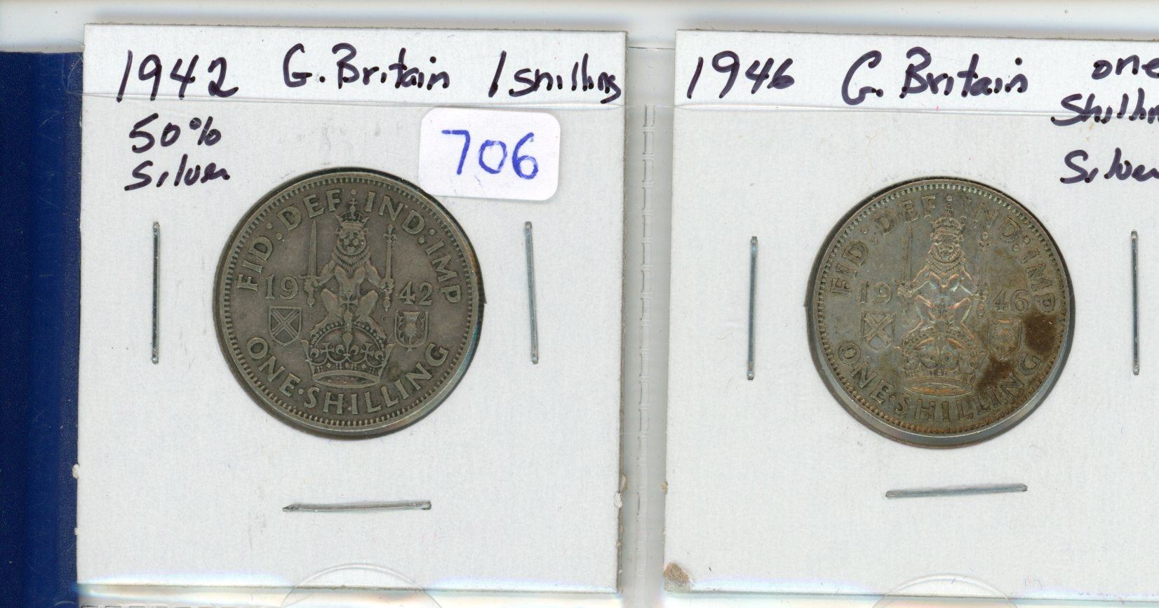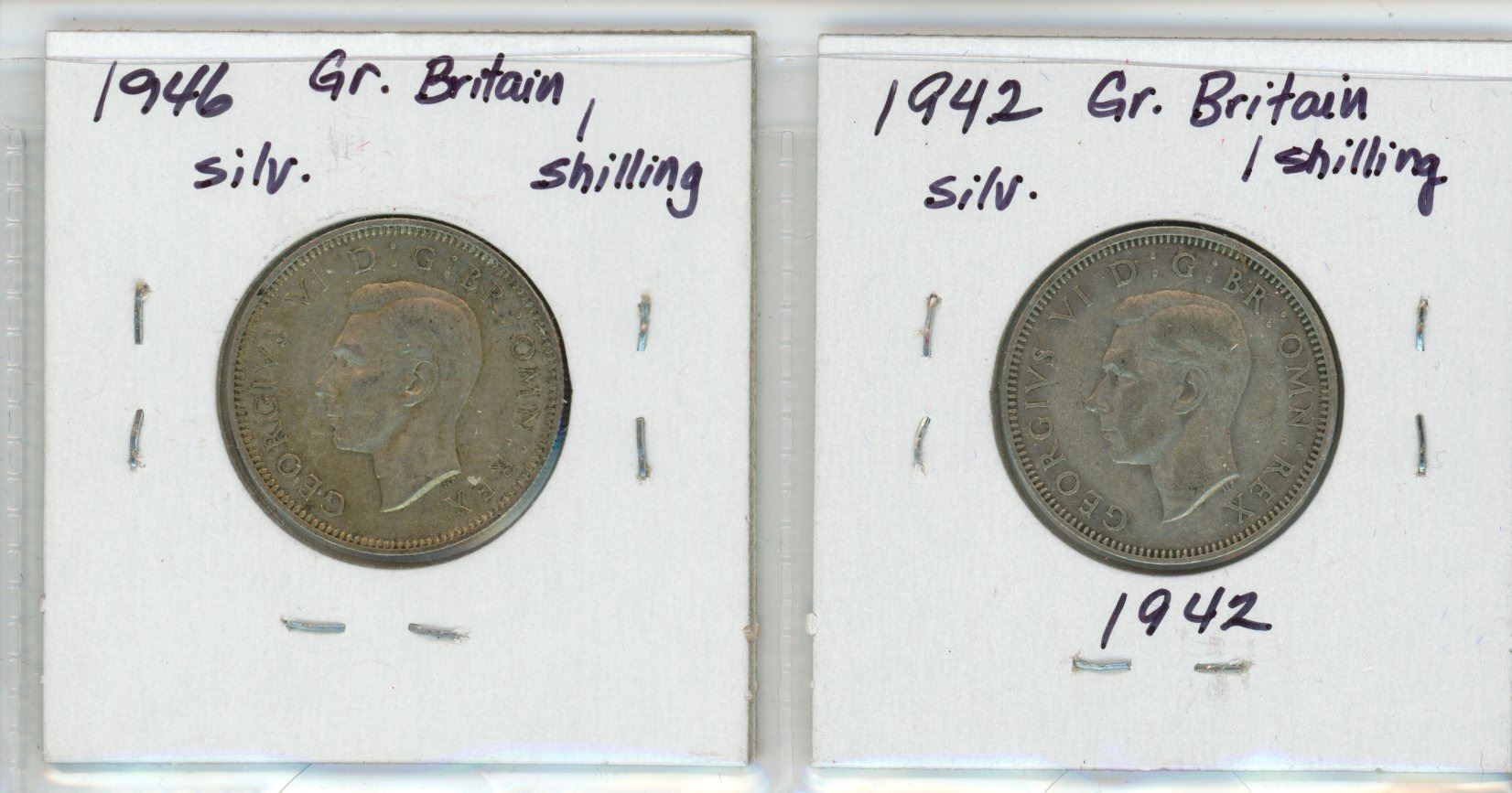 Lot of 2 Great Britain Silver 1 Shilling: 1942 & 1946