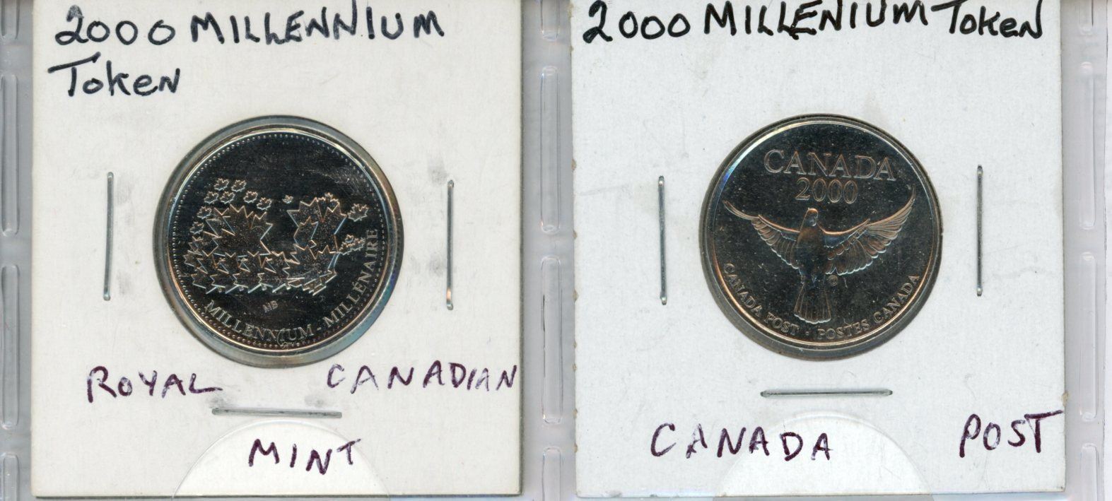 Lot of 2 Medals. One issued by the Royal Canadian Mint in 2000, the other by Canada Post, also in 2000. Both are Brilliant Uncirculated.