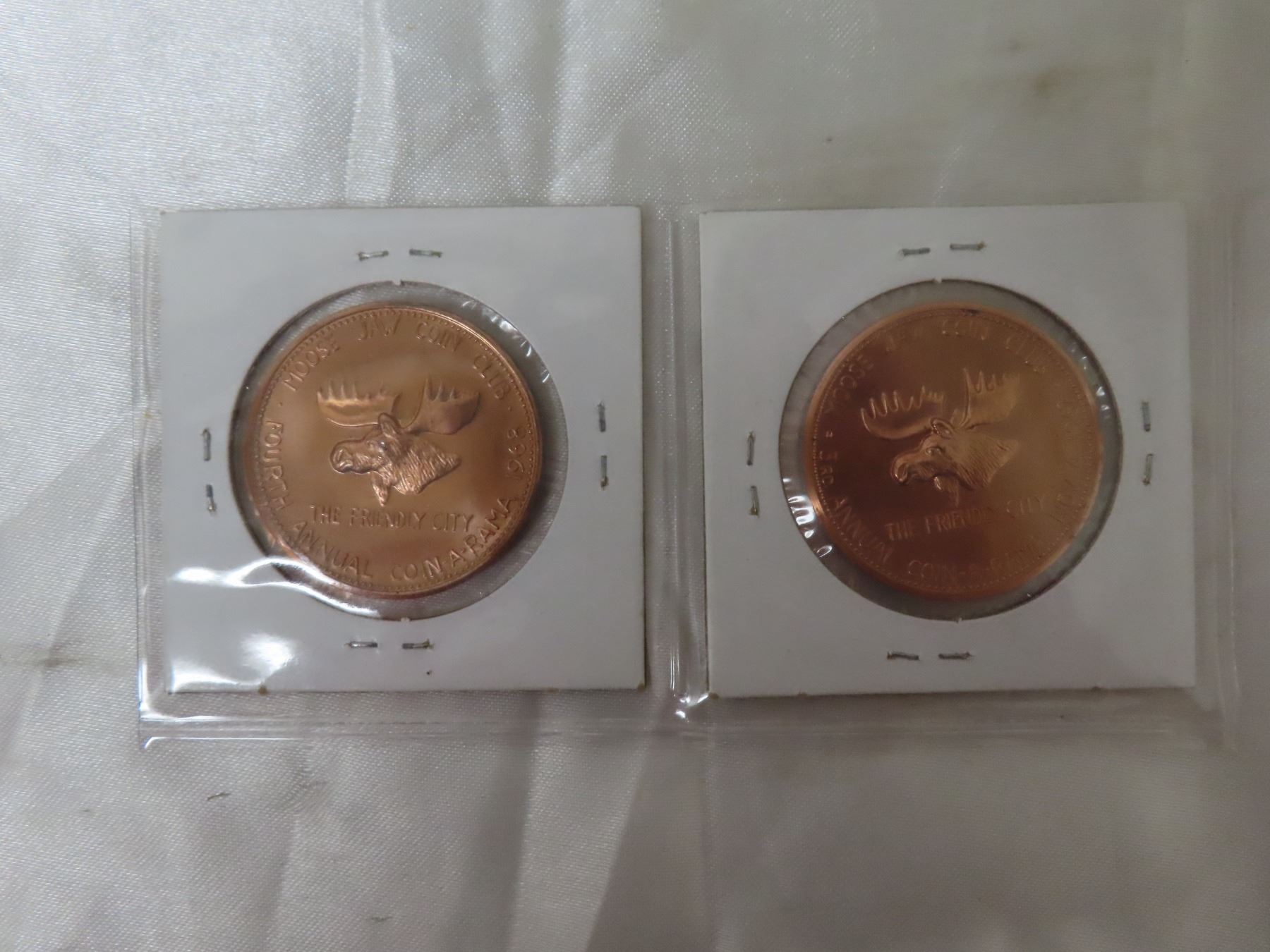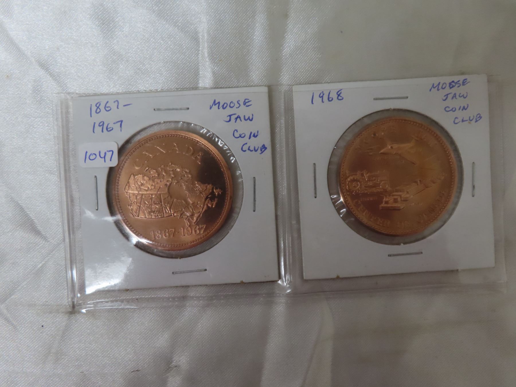 Lot of 2 Moose Jaw Coin Club medals. Includes 1867 – 1967 Centennial & 1968 4th Annual Coin-A-Rama. BU Red.