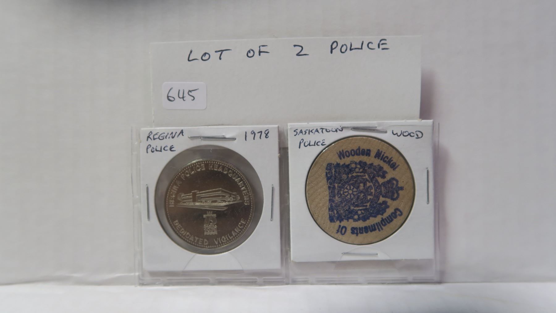 Lot of 2 Police. Includes 1978 Regina Police (Nickel) and Saskatoon Police (Wood).