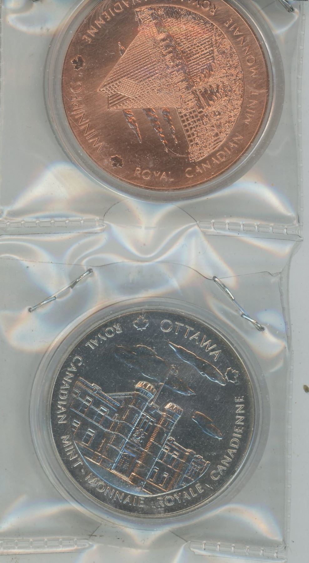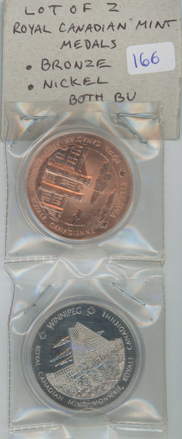Lot of 2 Royal Canadian Mint medals: Bronze & Nickel. Both BU. Both depict the Ottawa Mint on one side and the Winnipeg Mint on the other.