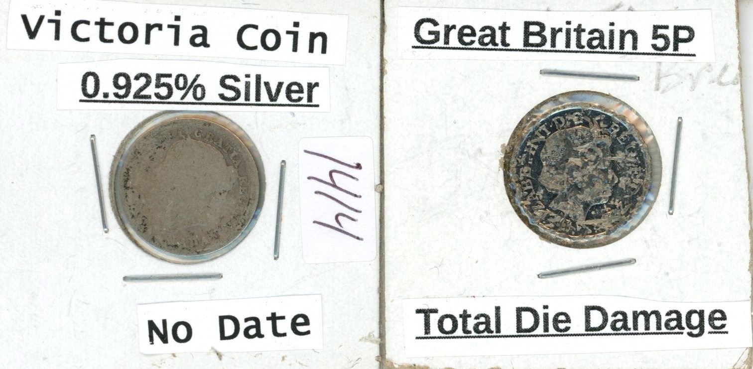 Lot of 2 - Silver Victoria Coin (no date), Great Brittain 5P Total Die Damage
