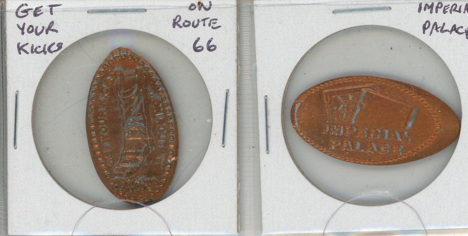 Lot of 2 U.S Elongated Cents. Includes Get Your Kick on Route 66 & Imperial Palace.