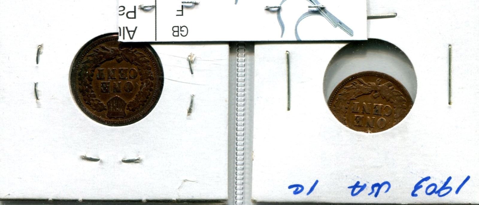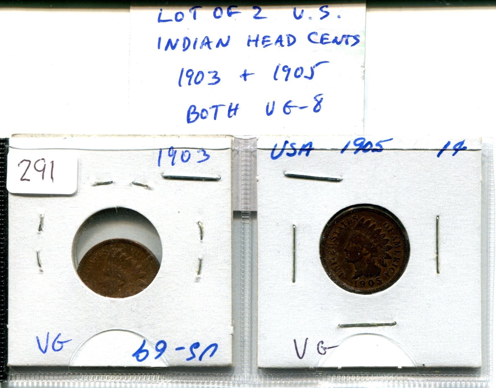 Lot of 2 U.S. Indian Head cents: 1903 & 1905. Both VG-8.