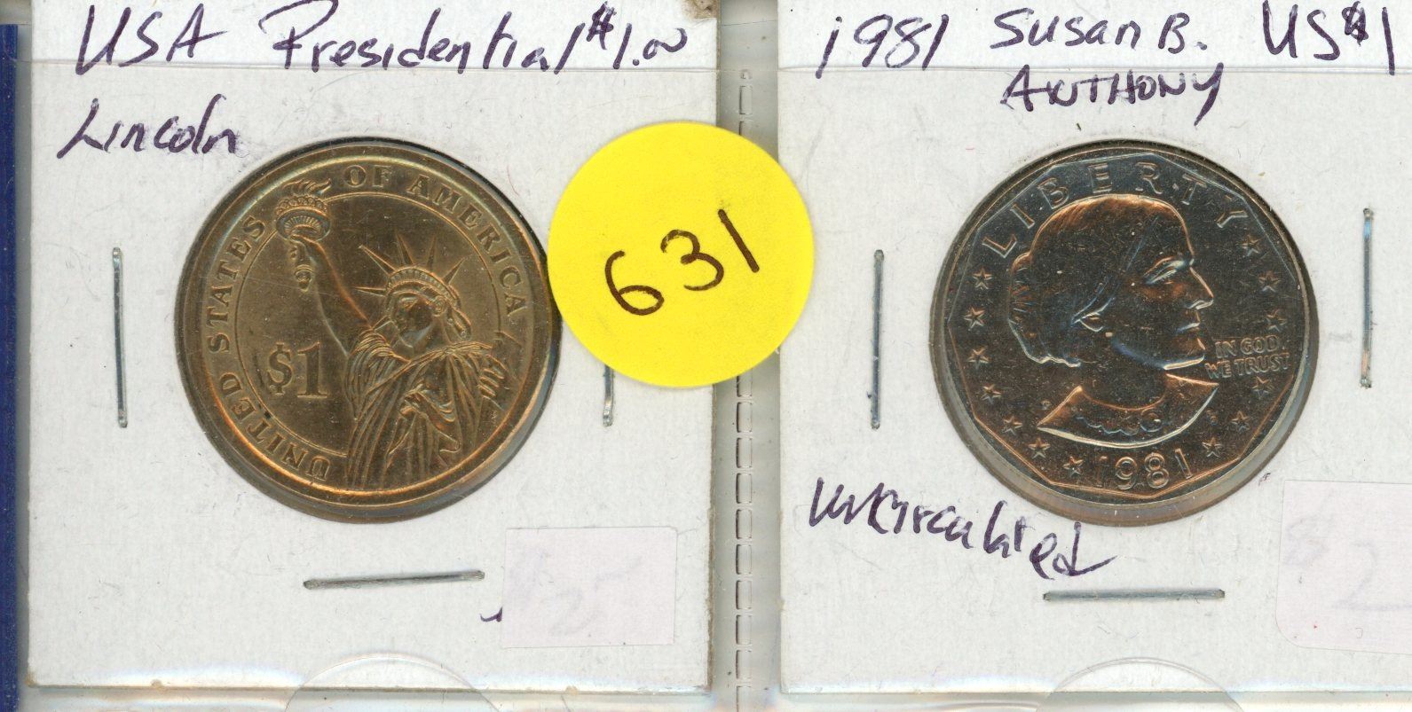 Lot of 2 USA: Lincoln Presidential Dollar & 1981 Susan B. Anthony Dollar